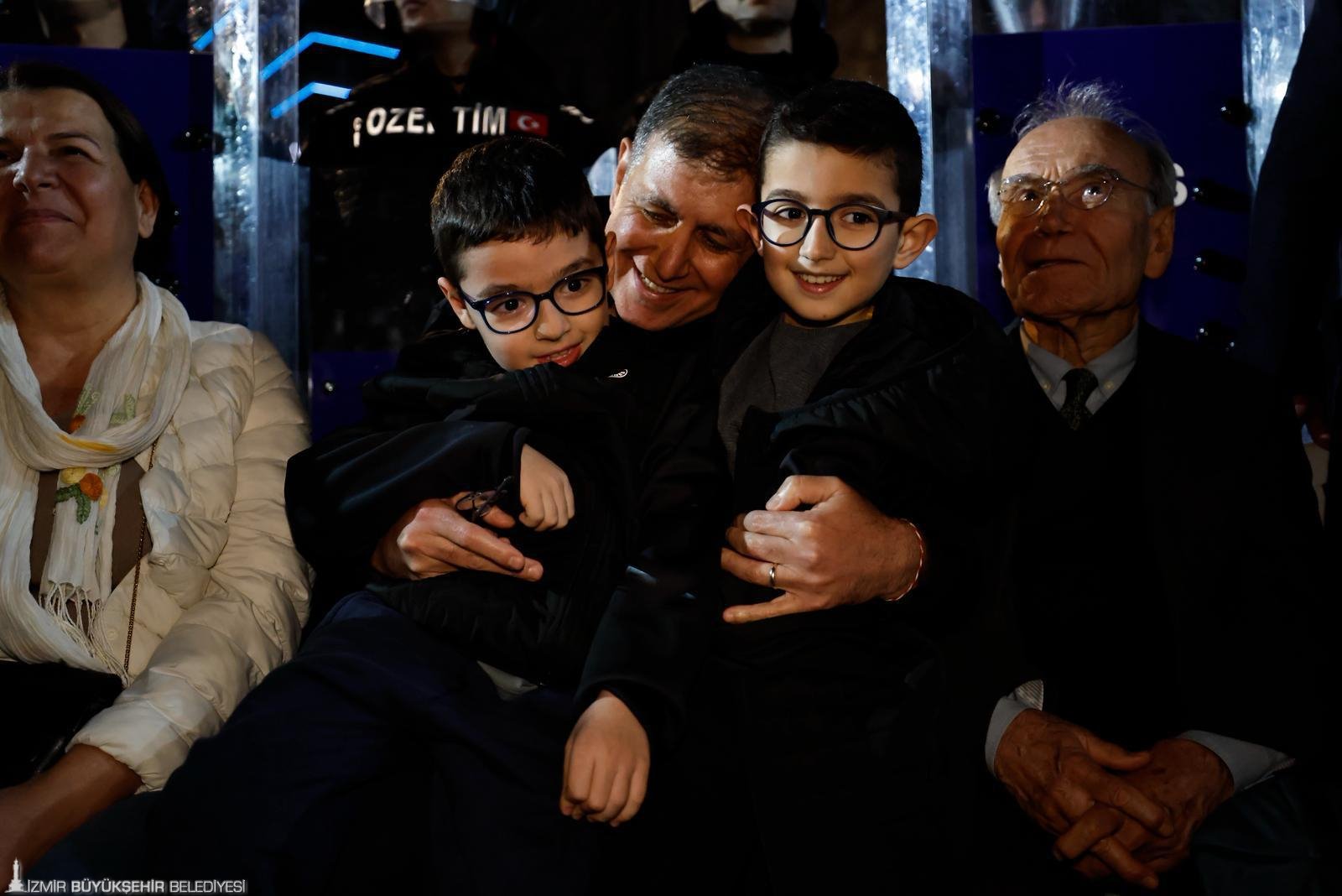 Başkan Tugay ve alanda bulunanlar, daha sonra hep bir ağızdan “Güzel günler göreceğiz” şarkısını söyledi.