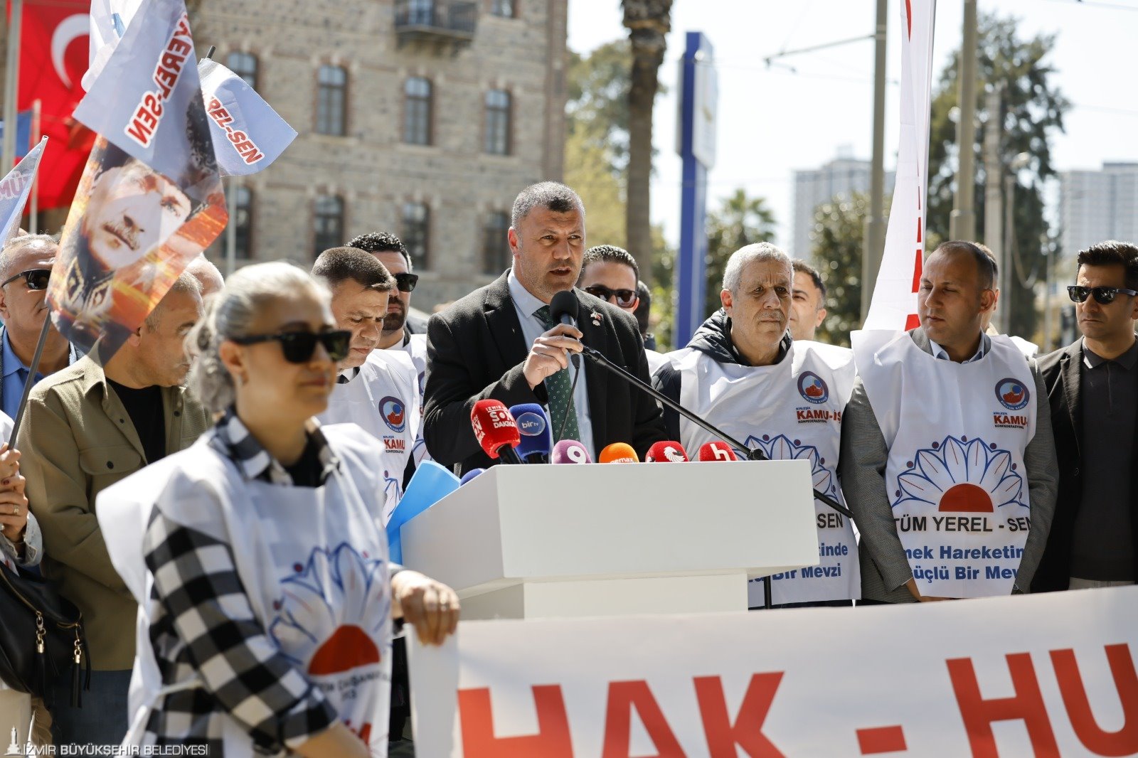 İzmir Büyükşehir Belediyesi Meslek Fabrikası’nın Vakıflar Bölge Müdürlüğü tarafından tahliyesine yönelik karara yönelik bir tepki de Tüm Yerel-Sen’e bağlı İzmir Şubelerinden geldi. Sendika adına açıklama yapan Tüm Yerel-Sen İzmir 3 No’lu Şube Başkanı Ufuk Cengizler, sadece binanın değil umudun da kuşatıldığını söyledi. Bu duruma sessiz kalmayacaklarını vurgulayan Ufuk Cengizler, İzmir halkının, emek verenlerin ve geleceğe umutla bakanların sesinin bugün burada “Hak, hukuk, adalet” diye yankılandığını belirtti. Cengizler, “Burası sadece bir bina değil. Burası Mustafa Kemal Atatürk’ün 1926 yılında, o dönemin Bakanlar Kurulu Kararı ile İzmir’e armağan ettiği bir değer. Yıllardır İzmir Büyükşehir Belediyesi’nin mülkiyetinde bulunan ve binlerce yurttaşa mesleki eğitim sağlayan Meslek Fabrikası sadece bir eğitim alanı değil; emeğin, eşitliğin ve umudun büyüdüğü bir merkezdir” dedi.