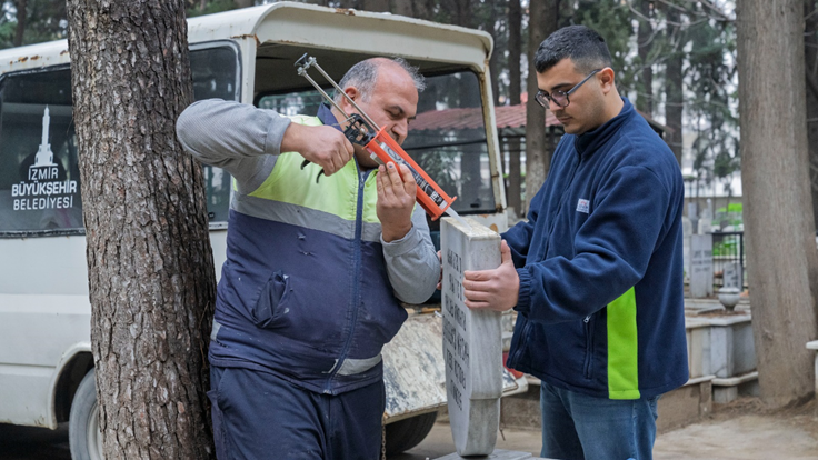Mezarlıklar Dairesi Başkanlığı ekipleri, saldırı sonrası zarar gören mezarların teker teker tespitini yaptı. Ekipler, sökülmüş fakat parçalanmamış mezar taşlarını onararak eski yerlerine yerleştirdi. Parçalanan mezar taşları ise birleştirilerek fotoğraflandı. Fotoğraflanan mezar taşları, İzmir Büyükşehir Belediyesi’nin atölyelerinde aynı yazı ve mermer kalitesinde üretilerek yerine konulacak. Mezarların kırılan diğer mermer aksamlarının ise uygun ölçüler alınarak yerinde tamiri yapılmaya başlandı.