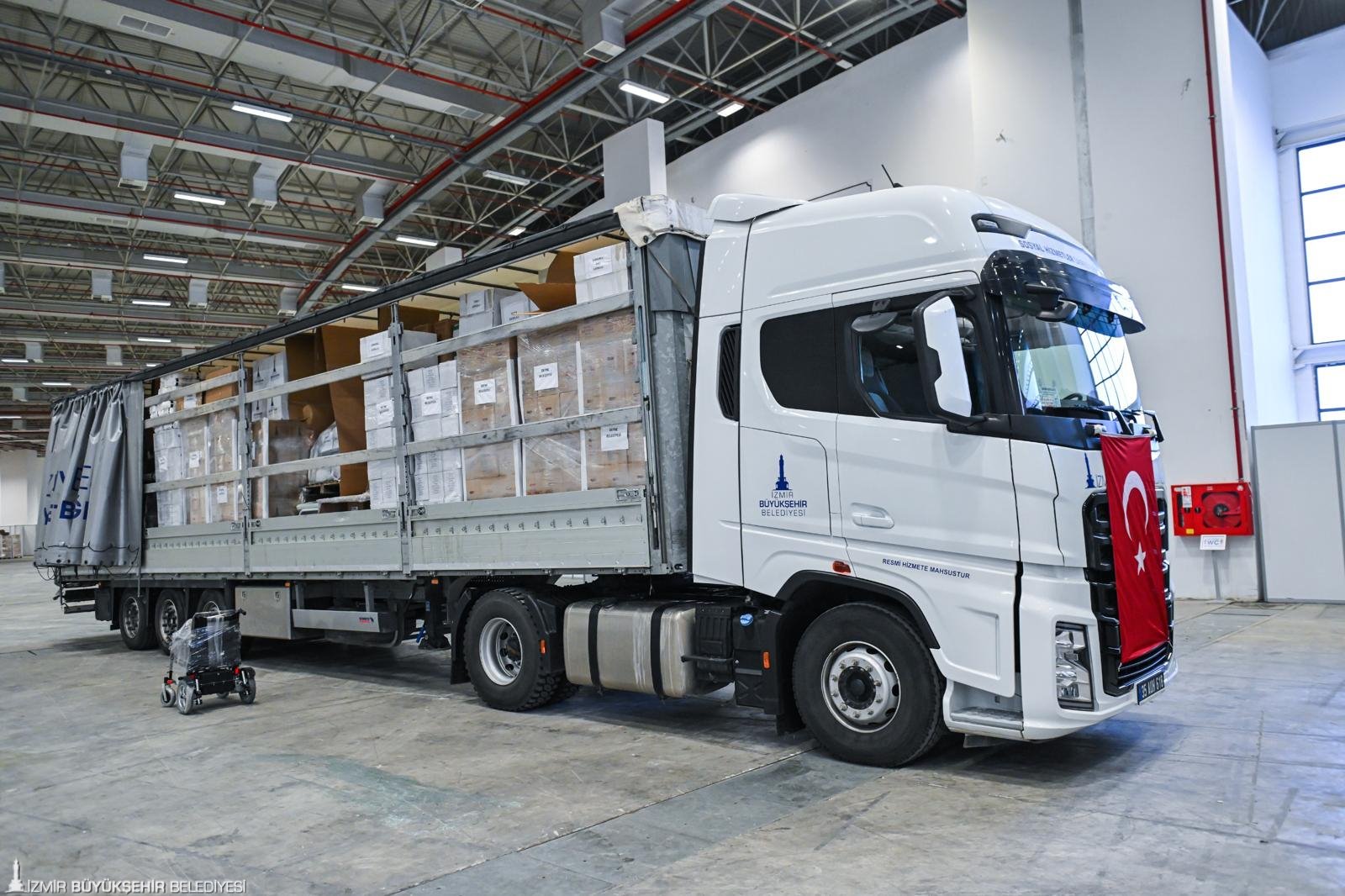 6 Şubat 2023’te yaşanan ve 11 ili etkileyen depremlerin ardından bölgeye destek sağlayan İzmir Büyükşehir Belediyesi, depremin üçüncü yıl dönümünde de depremzedeleri yalnız bırakmadı. “Unutmadık Yalnız Bırakmıyoruz’ mesajını Hatay halkına iletmek üzere harekete geçilirken, ayni destek malzemeleri bir TIR, iki kamyon ve iki panelvan araca yüklenerek Fuar İzmir’den yola çıktı. Eğitim, sağlık ve sosyal alanlardaki ihtiyaçları karşılamayı amaçlayan yardımlar afet bölgesine ulaştırılacak.