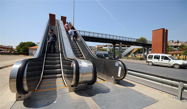 İzmir Büyükşehir Belediyesi tarafından inşa edilen yaya üst geçitlerinden asansörler, özelikle engelli vatandaşların kullanımına yönelik olarak hazırlandı. Üst geçitlerin engelli vatandaşlar tarafından da kullanılmasını sağlayan bu özelliğin yanında yürüyen merdivenler de yaşlıların güvenle ve rahatlıkla karşıdan karşıya geçişlerine yardımcı oluyor. Yaşlı ve engelliler de düşünülerek yapılan üst geçitler, tüm vatandaşların kullanımında yaya geçişlerine güven ve büyük bir konfor getiriyor.