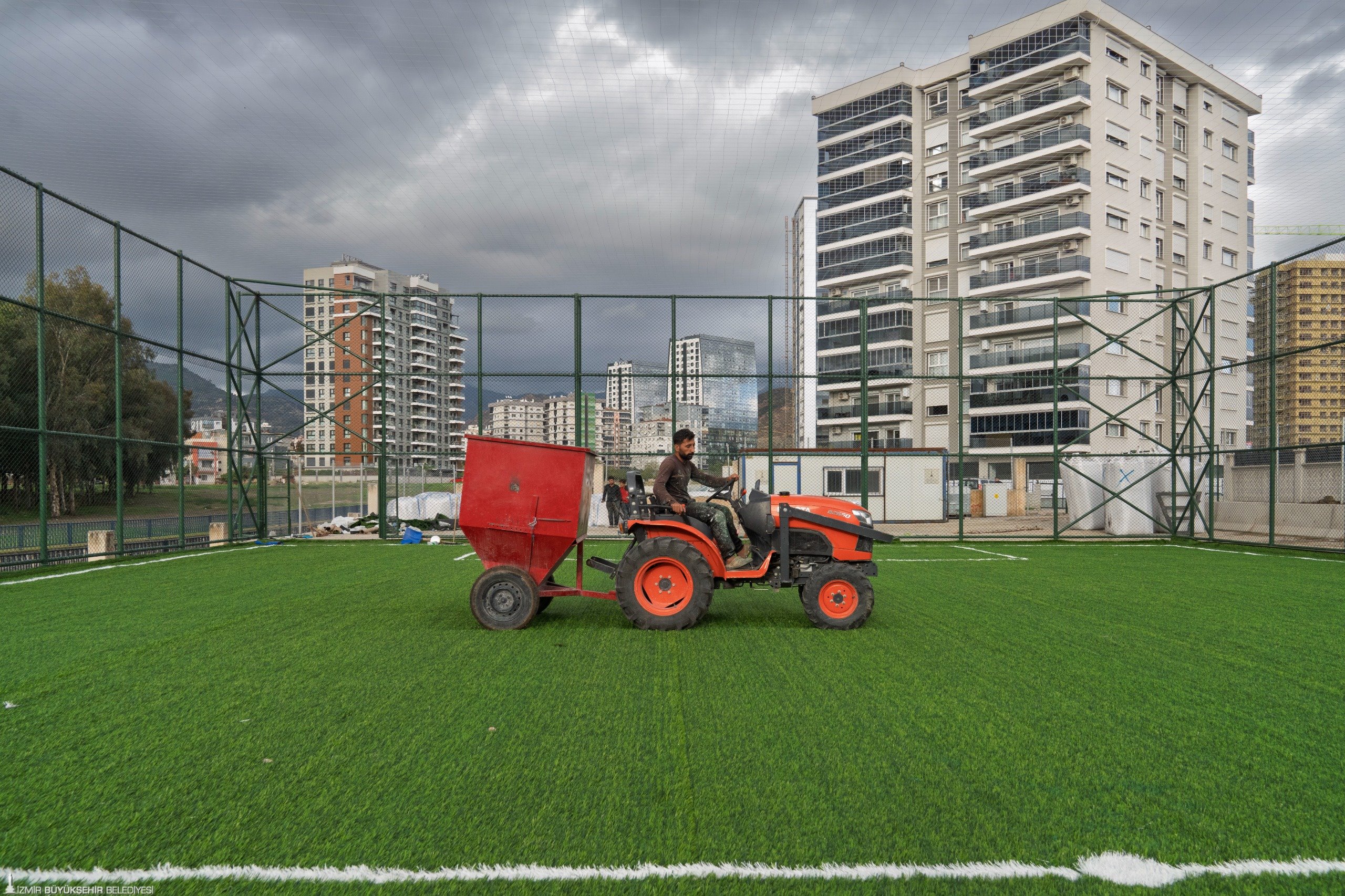 Bayraklı ve Karşıyaka’daki üç halı sahanın imalatının yüzde 90 seviyesine geldiğini belirten Yapı İşleri Dairesi Başkanlığı Tesisler Bakım ve Onarım Şube Müdürlüğü Şefi Tugay Atilla, “Bayraklı’daki tek sahayı iki sahaya dönüştürdük. Örnekköy’deki halı sahamızı ise sıfırdan yapıyoruz. Karaburun ve Menemen’deki halı sahaların zemin etütleri yapıldı. Beton ve zemin tesviyeleri yapıldıktan sonra imalatına başlayacağız. Çalışlarımızı Fen İşleri Dairesi Başkanlığımız ile birlikte yürütüyoruz” diye konuştu.