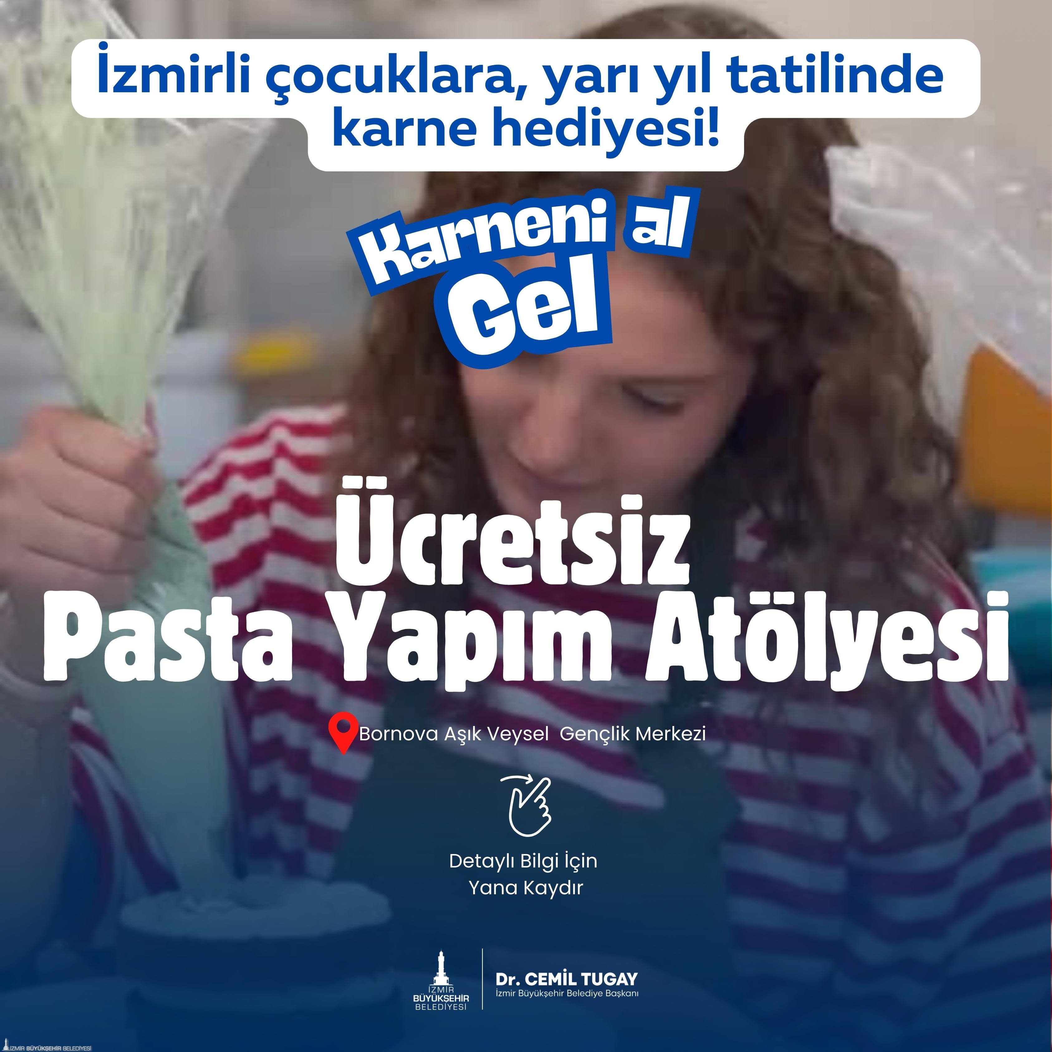 İzmir’de öğrencilerin yarıyıl tatili İzmir Büyükşehir Belediyesi’nin hazırladığı programlarla çok renkli geçiyor. Tiyatrodan, gezilere, atölye çalışmalarından sinema gösterimlerine kadar çocukların dolu dolu bir tatil geçirmesi için hazırlanan etkinlikler arasında spor aktiviteleri de yer alıyor. Havuz İzmir’de ebeveynleri ile yüzmek, Macera Park’ta maceraya doymak, buz pistinde kaymak, Celal Atik Spor Salonu’nda cimnastik yapmak, basketbol ve voleybol oynamak isteyen ilkokul ve ortaokul öğrencileri karnelerini göstererek spor etkinliklerinden ücretsiz yararlanacak. Ayrıca Bornova Aşık Veysel Gençlik Merkezi’nde ücretsiz pasta yapım atölyesi de olacak. 15 kişilik kontenjanla sınırlı atölyeye başvurular gençlik merkezinden yüz yüze alınacak. 31 Ocak tarihine kadar sürecek etkinlikler ile ilgili detaylı bilgi 293 30 94 numaralı telefon alınabilir.