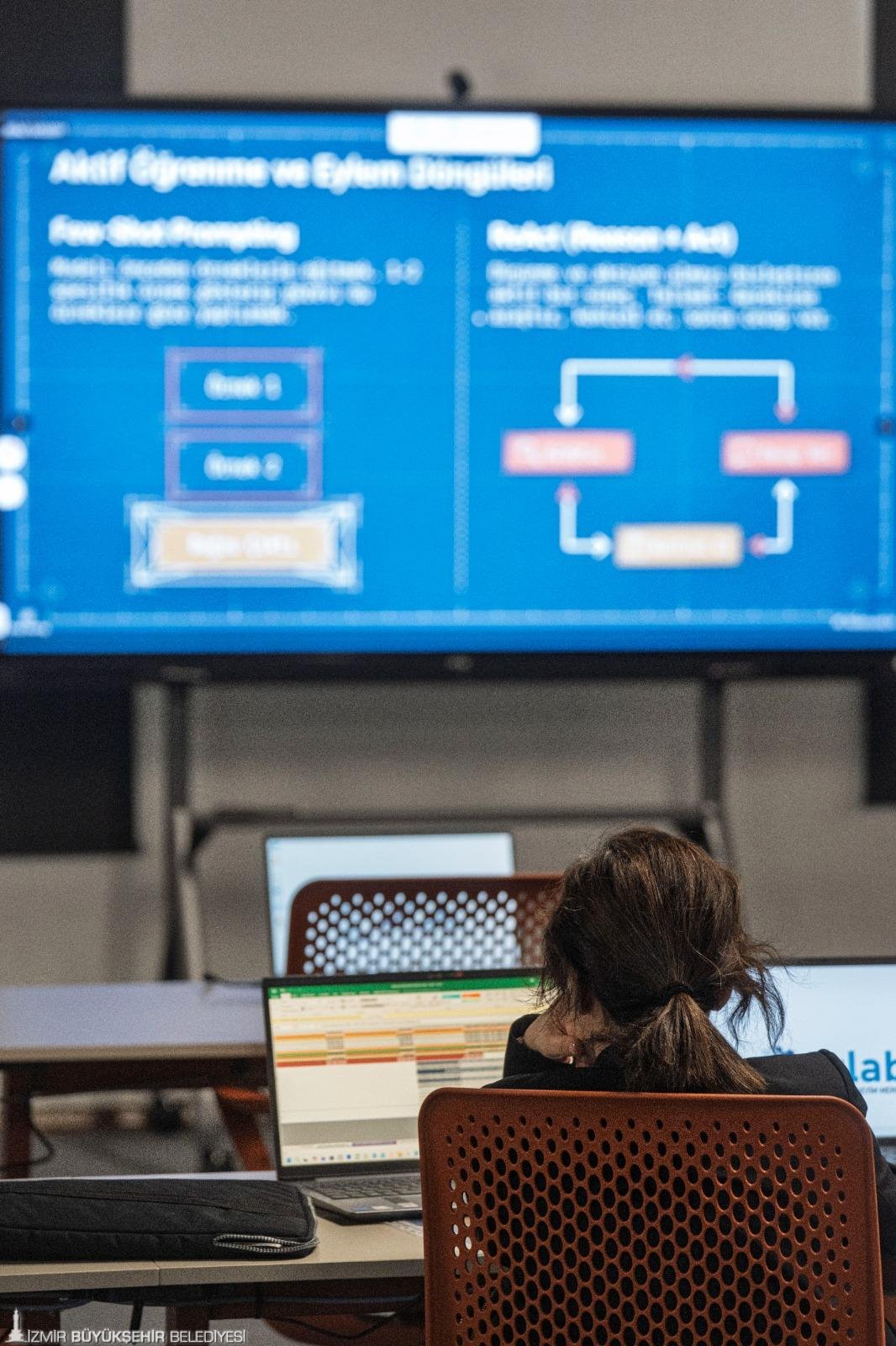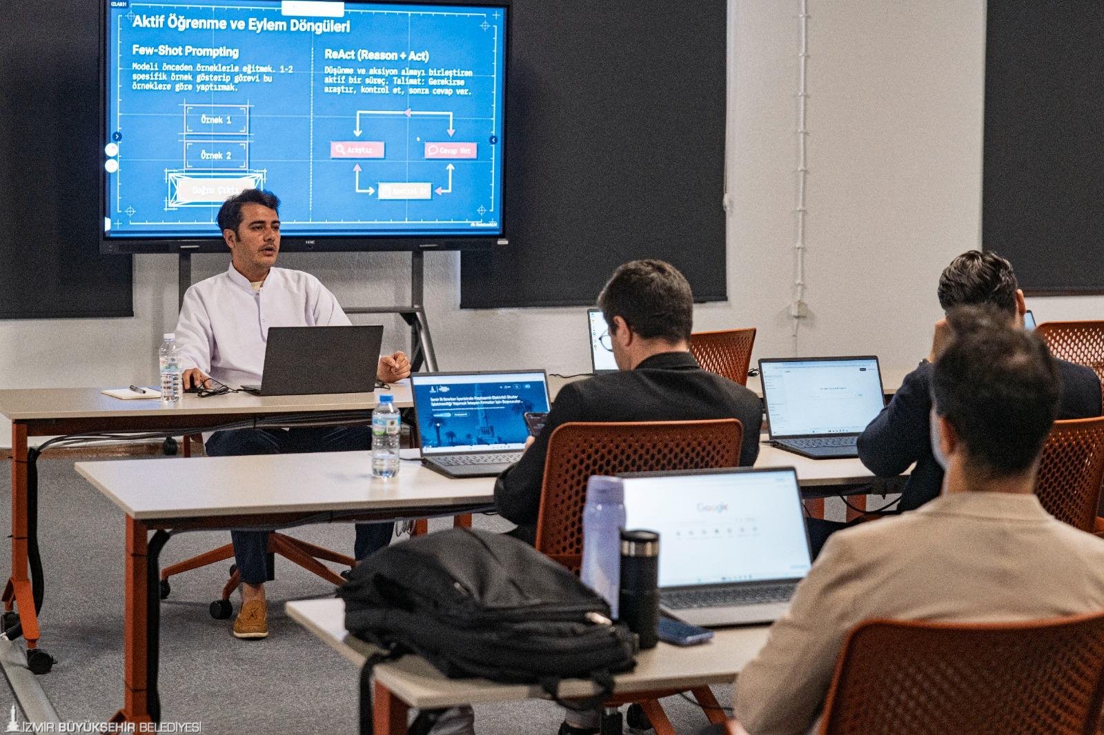 İzmir Büyükşehir Belediyesi’nin Tarihi Havagazı Fabrikası’nda hayata geçirdiği Dijital Deneyim Merkezi’nde, kurum içinde yapay zeka kullanımına yönelik önemli bir adım atıldı. Kurumsal altyapıyı güçlendirmeyi ve personelin dijital becerilerini geliştirmeyi hedefleyen merkezde, belediye birimlerinde görev yapan şube müdürlerine yapay zekanın verimli kullanımı konusunda eğitim verildi. İzmir Büyükşehir Belediyesi Bilgi İşlem Dairesi Başkanlığı ile İzmir Büyükşehir Belediyesi Kadın ve Aile Hizmetleri Dairesi Başkanlığı iş birliğinde düzenlenen eğitimlerde, yapay zekanın kurumsal süreçlerde etkin kullanımı anlatıldı. Üç gün süren program kapsamında toplam 165 şube müdürüne eğitim verildi.