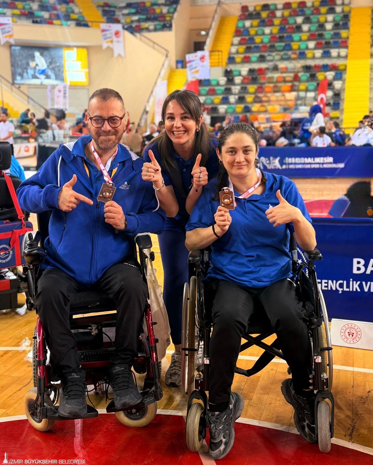 23-29 Mart tarihleri arasında Balıkesir’de düzenlenen Boccia Türkiye Şampiyonası’na 17 ilden yaklaşık 160 sporcu katıldı. Şampiyonada bireysel BC1, BC2, BC3, BC4 ve BC5 klasmanlarında aynı zamanda takım ve çiftler kategorilerinde müsabakalar oynandı. İzmir Büyükşehir Belediyesi Boccia Takımı, BC2 klasmanında yarı finalde elenerek turnuvayı tamamladı. BC4 erkekler ve BC5 kadınlar klasmanlarında ise bronz madalya kazanarak önemli bir başarıya imza attı. Zorlu ve çekişmeli geçen müsabakalarda mücadele eden takım sporcuları, sergiledikleri performansla dikkat çekti.
