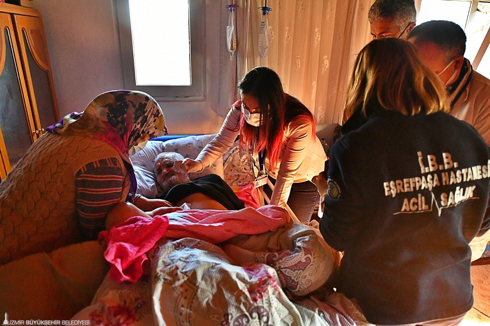 Hizmetten faydalanan Emine Güzel, “Annem beş aydır yatalak, babam alzaymır hastası. Abimle birlikte bakıyoruz. Büyükşehir Belediye Başkanımız Tunç Soyer ve Gaziemir Belediyesi hiçbir zaman desteklerini esirgemedi, hep kol kanat gerdi. Babam beslenme hortumunu çıkardı, beslenemeyecek diye çok korktum. Sağ olsun, eve gelen doktorlarımız hemen müdahale etti. Evde bakım hizmeti bizim için bir velinimet. Allah razı olsun” dedi.