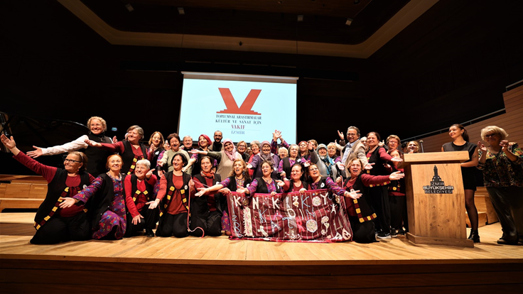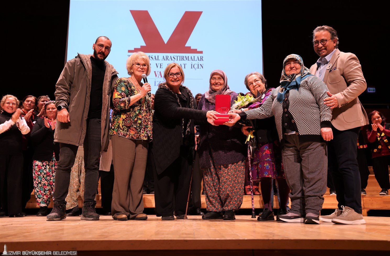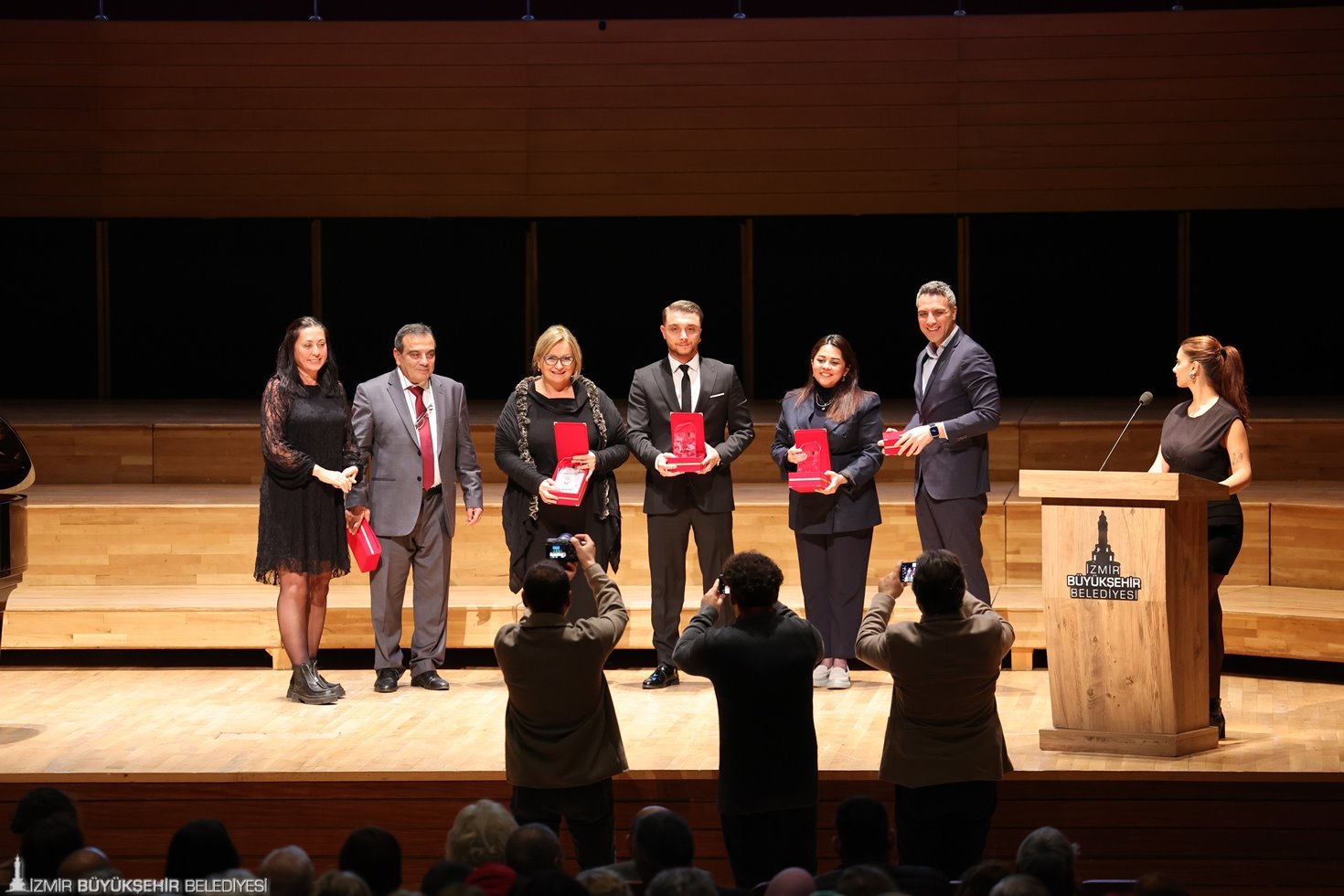 Ahmed Adnan Saygun Sanat Merkezi'nde düzenlenen ödül töreninde sahneye çıkan İzmir Büyükşehir Belediyesi Genel Sekreter Yardımcısı Prof. Dr. Pınar Okyay, Köy Tiyatroları Kurucu Genel Sanat Yönetmeni Vedat Murat Güzel, eğitmenler ve oyuncular bu anlamlı ödülü almanın mutluluğunu yaşadı.