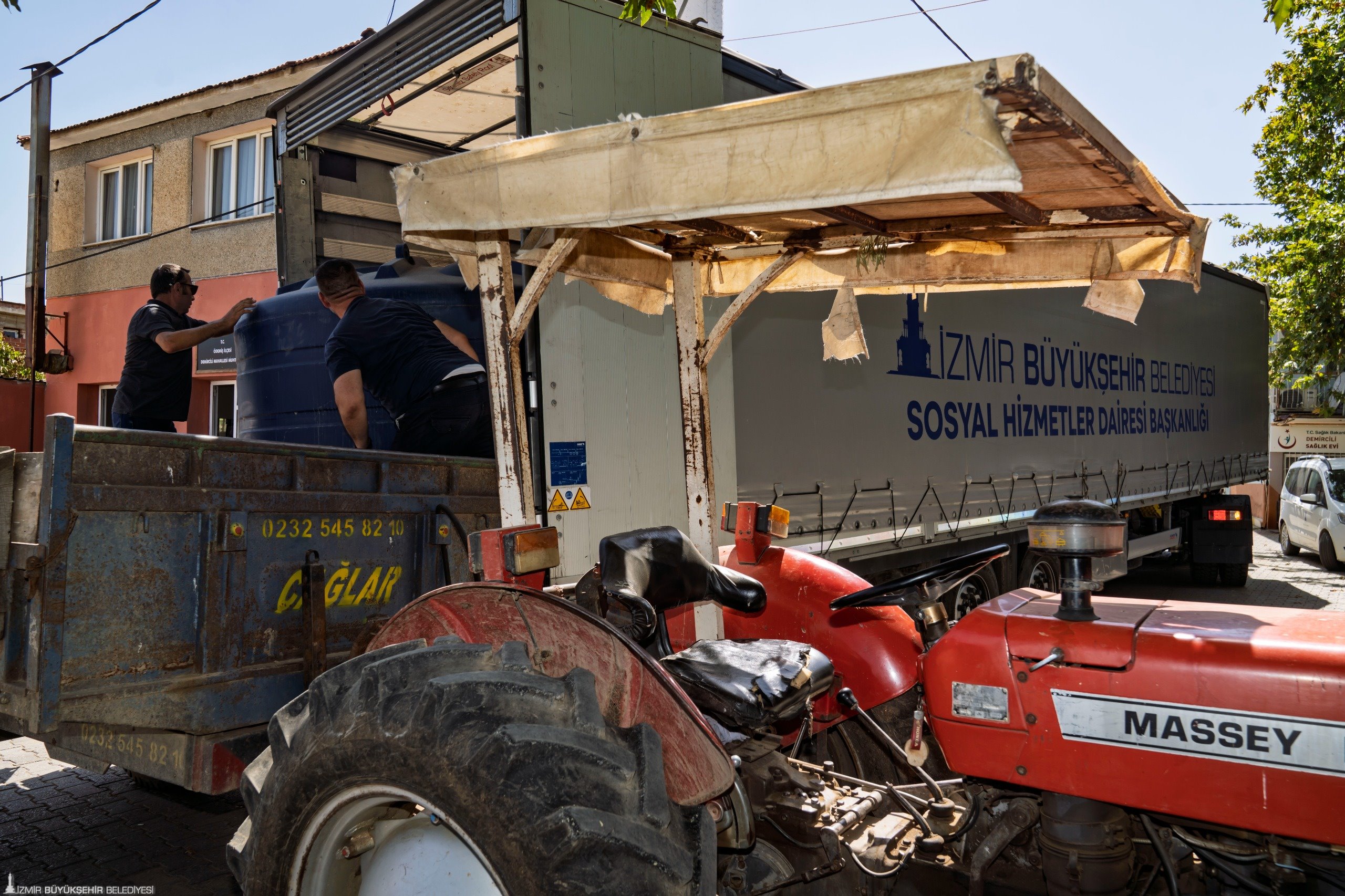 İzmir Büyükşehir Belediyesi, orman yangınlarının açtığı yaraları sarmak için çalışmalarını sürdürüyor. Aliağa, Foça, Ödemiş, Seferihisar, Menderes başta olmak üzere çok sayıda ev, hayvan damı ve tarım alanlarının zarar gördüğü bölgelerde hasar tespit çalışmalarını hızla tamamlayan Tarımsal Hizmetler Dairesi Başkanlığı, tarımsal üretimin devam edebilmesi ve yangın alanların yeniden yeşermesi için su deposu dağıtımına başladı. Su deposu yanan 16 üreticiye su deposu verildi.