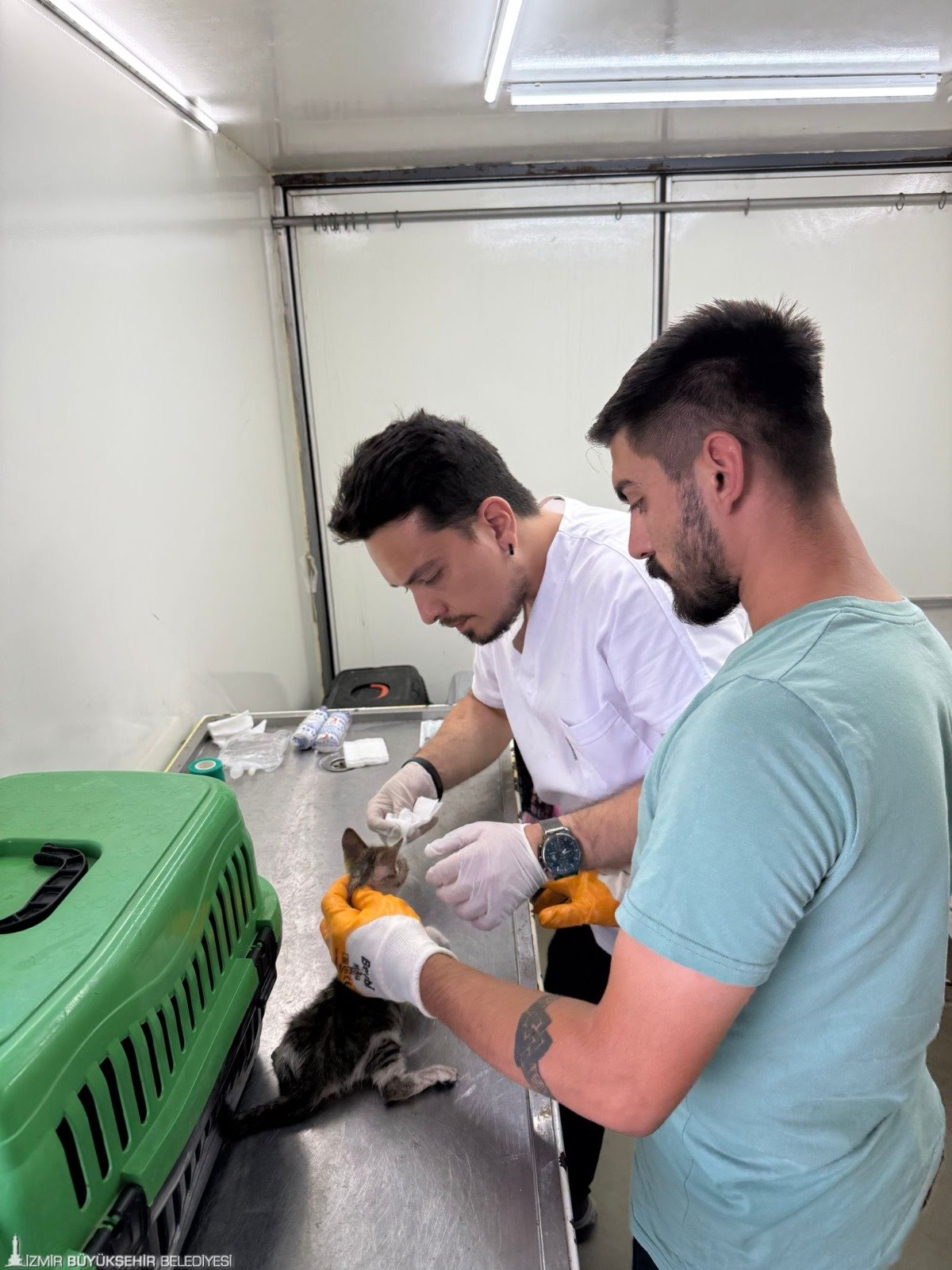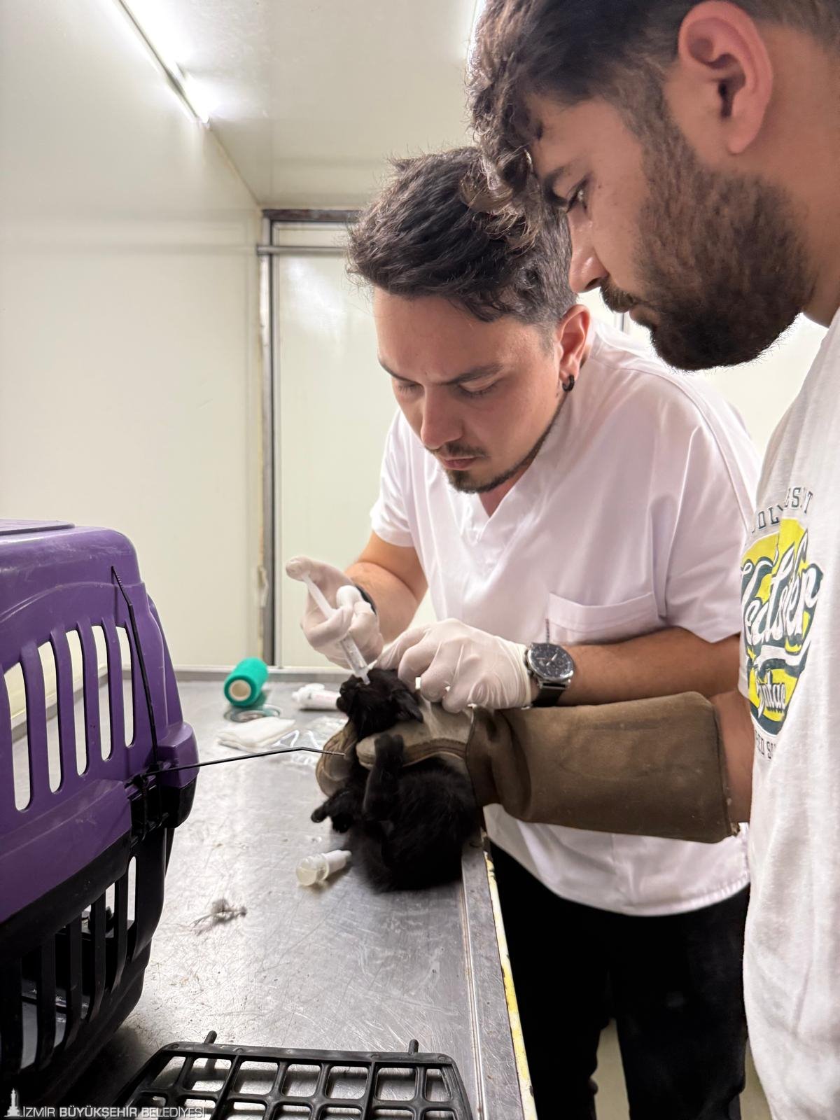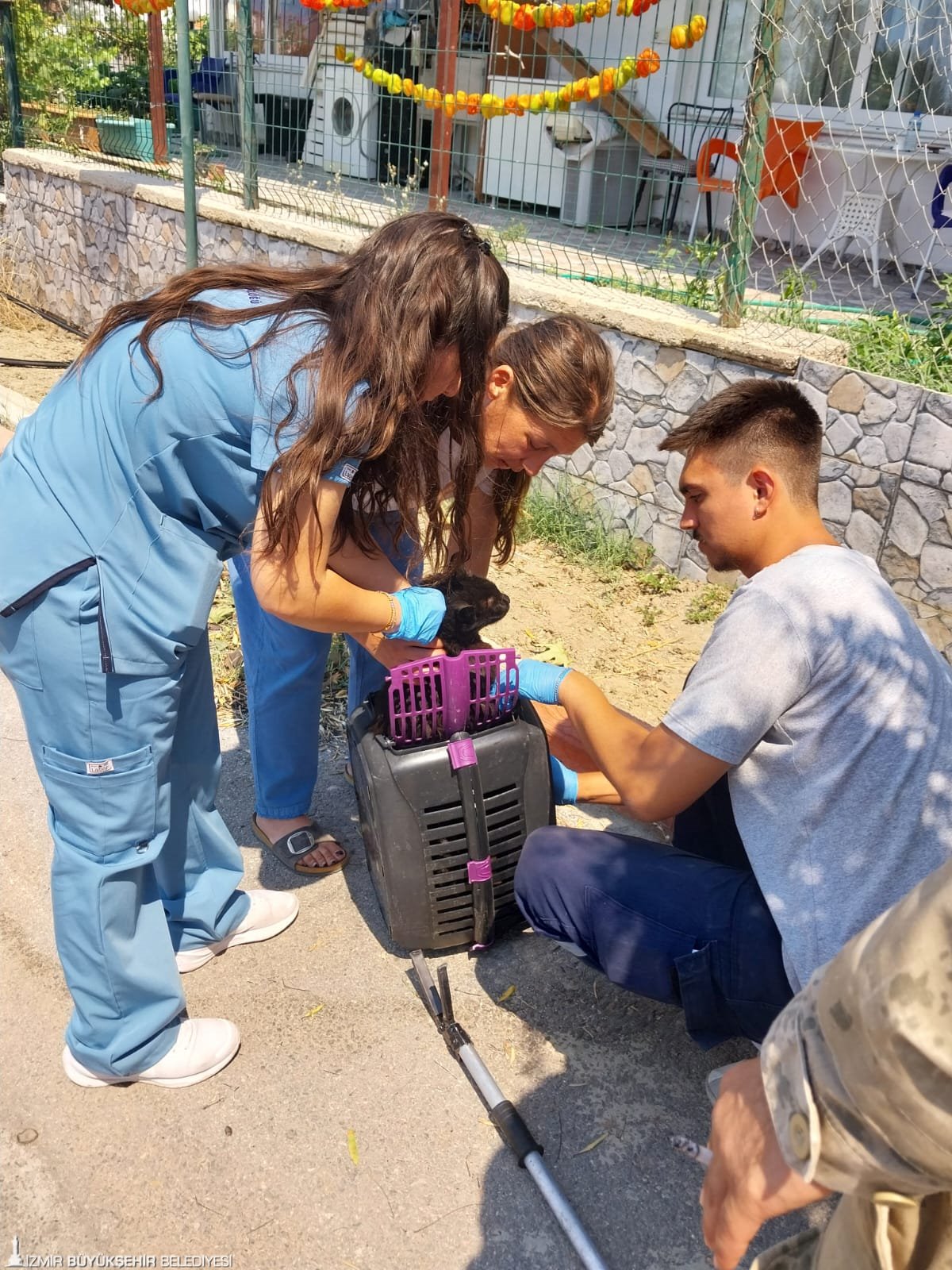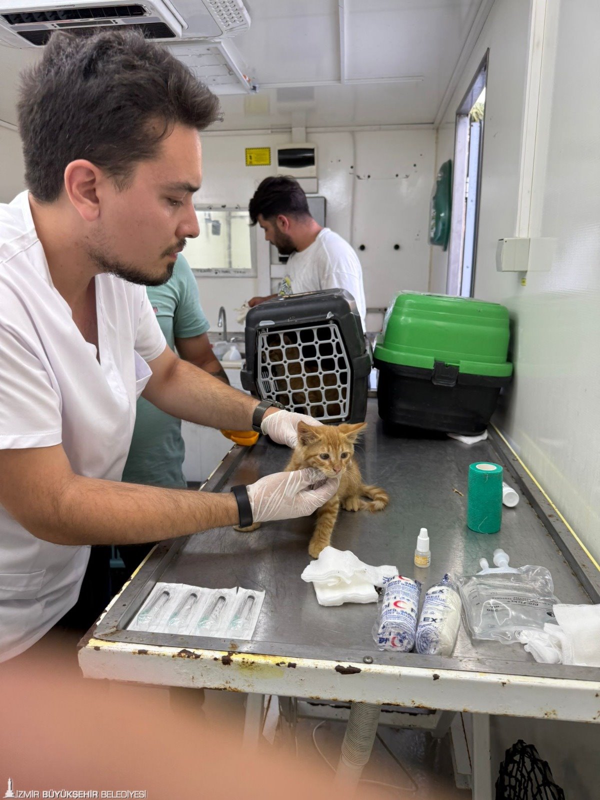 İzmir Büyükşehir Belediyesi Veteriner İşleri Dairesi Başkanlığı ekipleri pazar gününden bu yana 50 küçükbaş, 30 kanatlı, 22 köpek ve 40 kediyi bölgeden tahliye etti. Ekipler, PAKO Sosyal Yaşam Kampüsü’ne getirdikleri yaralı hayvanların tedavisini sürdürüyor. Yine yangın bölgesinde 500 tavuk sahibinin talebi ile daha güvenli bir alana nakledildi. Ekipler, dumandan etkilenen bir muhabbet kuşu ile bir sevda papağanını mobil hizmet aracında tedavi ederek sahiplerine teslim etti.