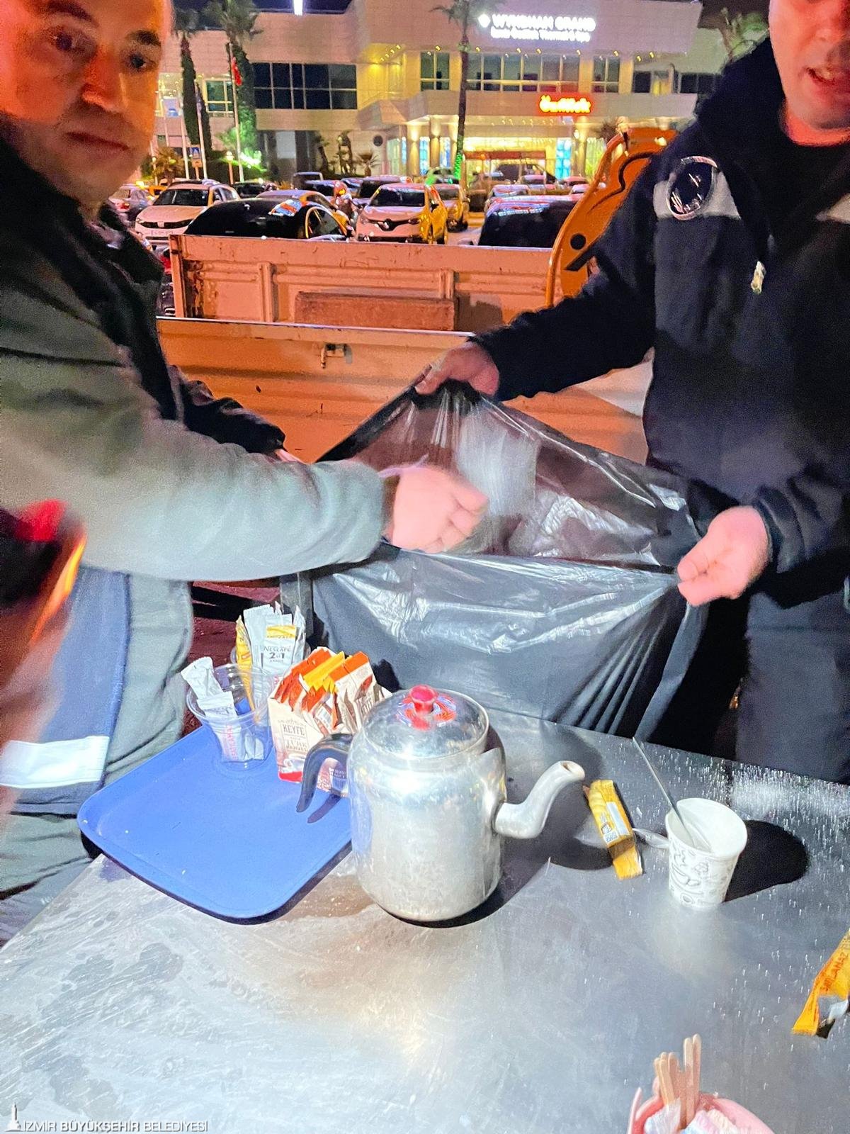 İzmir Büyükşehir Belediyesi Zabıta Dairesi Başkanlığı Denetim Şube Müdürlüğü ekipleri, Sahilevleri’nde iki bardak çayın 300 TL’ye satıldığı yönündeki şikayetler üzerine başlattığı denetimleri sürdürüyor. Ekipler, izinsiz seyyar faaliyetlerin önüne geçmek ve vatandaşların kamusal alanlarda mağduriyet yaşamaması için hem gündüz hem de gece kentin sokaklarında görev yapıyor.