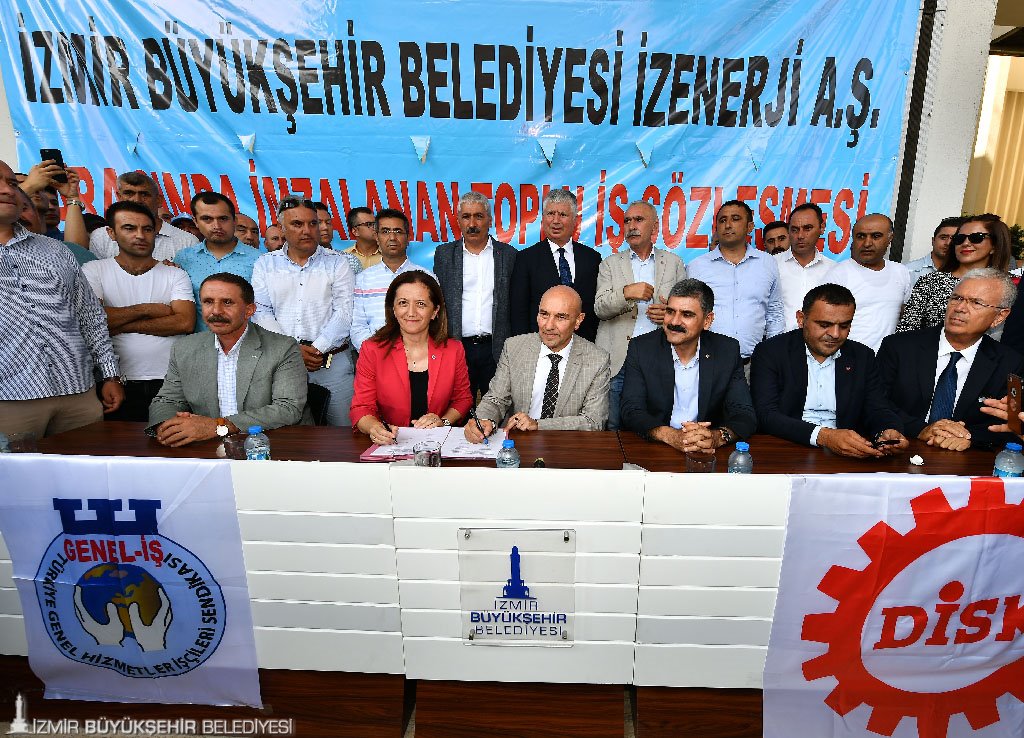 İzmir Büyükşehir Belediyesi şirketi İZENERJİ ile iş yerinde örgütlü Devrimci İşçi Sendikaları Konfederasyonu'na (DİSK) bağlı Genel-İş İzmir 2 No’lu Şube arasındaki altıncı dönem toplu iş sözleşmesi (TİS) İzmir Büyükşehir Belediye Başkanı Tunç Soyer'in de katıldığı bir törenle imzalandı. 5 bin 80 işçiyi kapsayan toplu iş sözleşmesinde işçilerin maaşlarına ortalama yüzde 40 zam geldi. İzmir Büyükşehir Belediyesi önünde gerçekleşen imza törenine DİSK Genel Başkanı Arzu Çerkezoğlu, Genel- İş Genel Başkanı Remzi Çalışkan, Genel- İş Genel Sekreteri Cafer Konca, Genel İş Örgütlenme Daire Başkanı Taner Şanlı, DİSK Ege Bölge Başkanı Memiş Sarı ile birlikte sendika temsilcileri, belediye bürokratları ve işçiler katıldı.