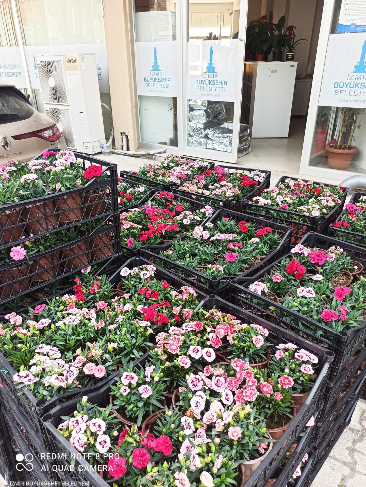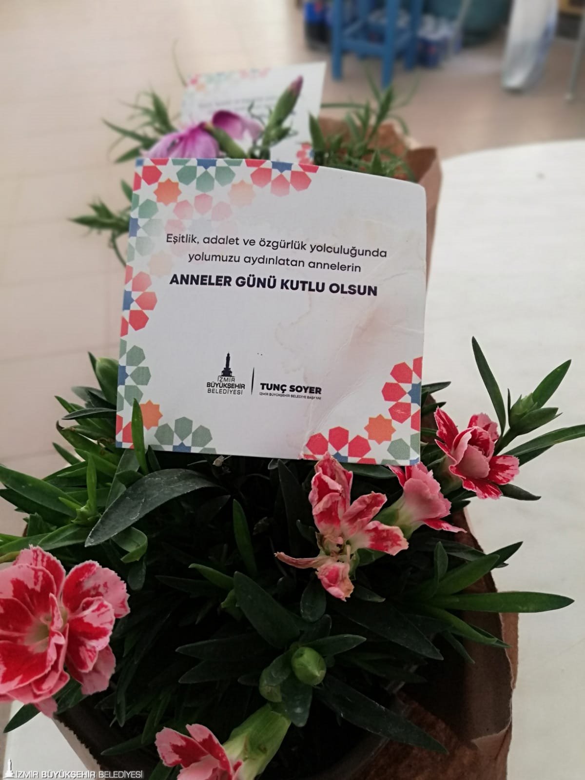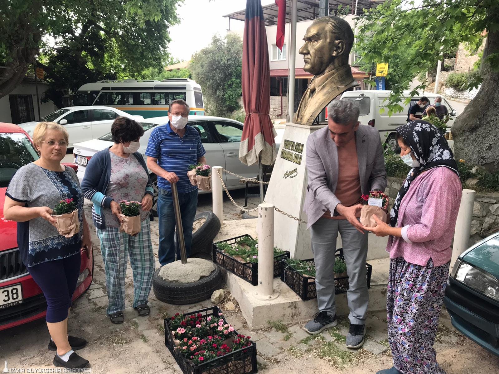 İzmir Büyükşehir Belediyesi Anneler Günü’nü sürpriz çiçeklerle kutluyor. Koronavirüs salgını nedeniyle sıkıntılı günler yaşayan çiçek üreticilerini desteklemek için İzmir Büyükşehir Belediyesi Sosyal Projeler Dairesi Başkanlığı tarafından küçük üreticiden alınan 11 bin saksı karanfil ve 4 bin saksı dalya çiçeği annelere armağan ediliyor. İzmir Büyükşehir Belediyesi Muhtarlık İşleri Dairesi Başkanlığı ekipleri 30 ilçede hem kadın muhtarlara hem de annelere ulaştırmak üzere 15 bin saksı çiçeğin dağıtımına başladı. İzmir Büyükşehir Belediye Başkanı Tunç Soyer'in kutlama mesajı ile birlikte çiçeklerini alan kadın muhtarlar ile anneler İzmir Büyükşehir Belediye Başkanı Tunç Soyer'e teşekkürlerini iletti.
