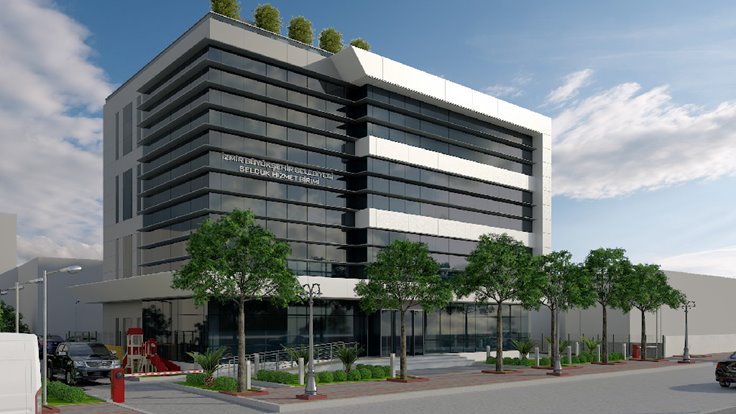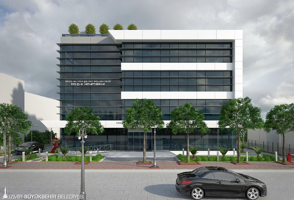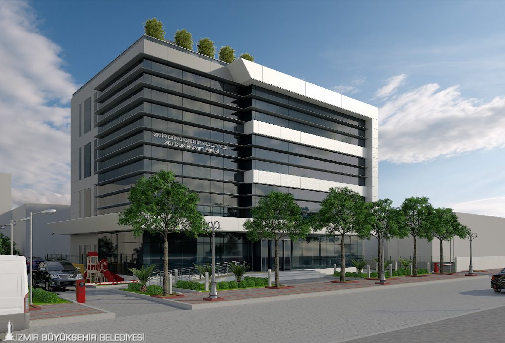 Selçuk Atatürk Mahallesi’nde konumlandırılacak İzmir Büyükşehir Belediyesi hizmet binası, 2.5 dönümlük proje alanında yükselecek. 4 kattan oluşacak yapıda 2 adet toplantı ve eğitim salonunu da yer alacak.