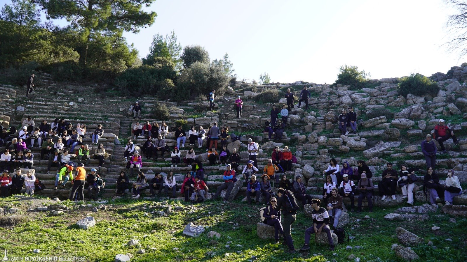 7 kilometrelik parkur boyunca gençler hem spor yaptı hem de Ege uygarlıklarının izlerini sürdü. Yürüyüş rotası üzerinde bulunan ve İzmir Büyükşehir Belediyesi’nin kazı çalışmalarına destek verdiği Klaros, kafilenin ilk durağı oldu. Antik dönemin önemli kehanet merkezlerinden biri olan Klaros ören yerinin tarihi atmosferini deneyimleyen öğrenciler, arkeolojik miras hakkında yerinde bilgi alma fırsatı buldu. Rotanın devamında Ege Denizi’ne hâkim bir tepede kurulan Notion Antik Kenti’ne ulaşan katılımcılar, kentin mühendislik harikası tiyatrosunda soluklandı. Tarih, mitoloji ve arkeolojinin iç içe geçtiği kültür gezisi, öğrencilere açık hava müzesi tadında bir deneyim sundu.