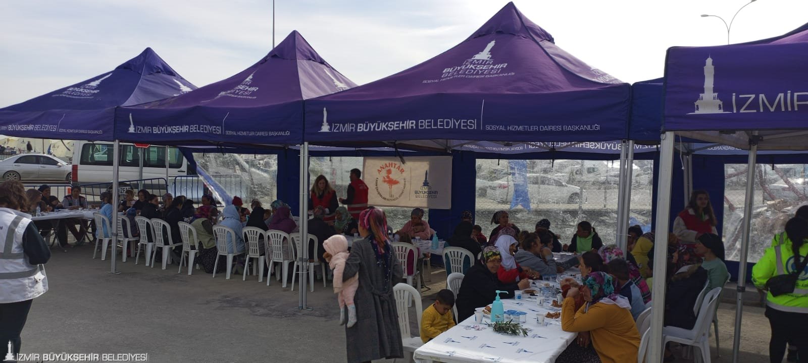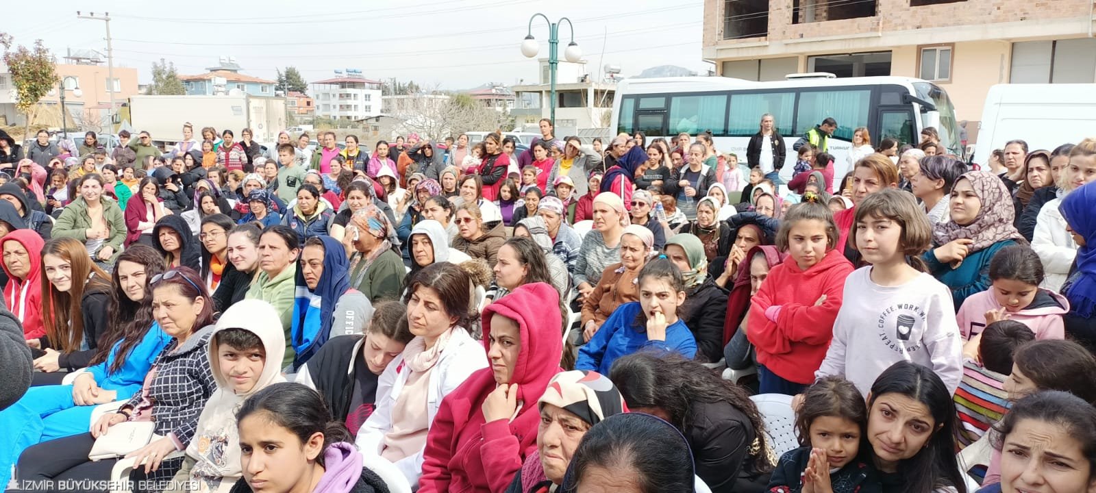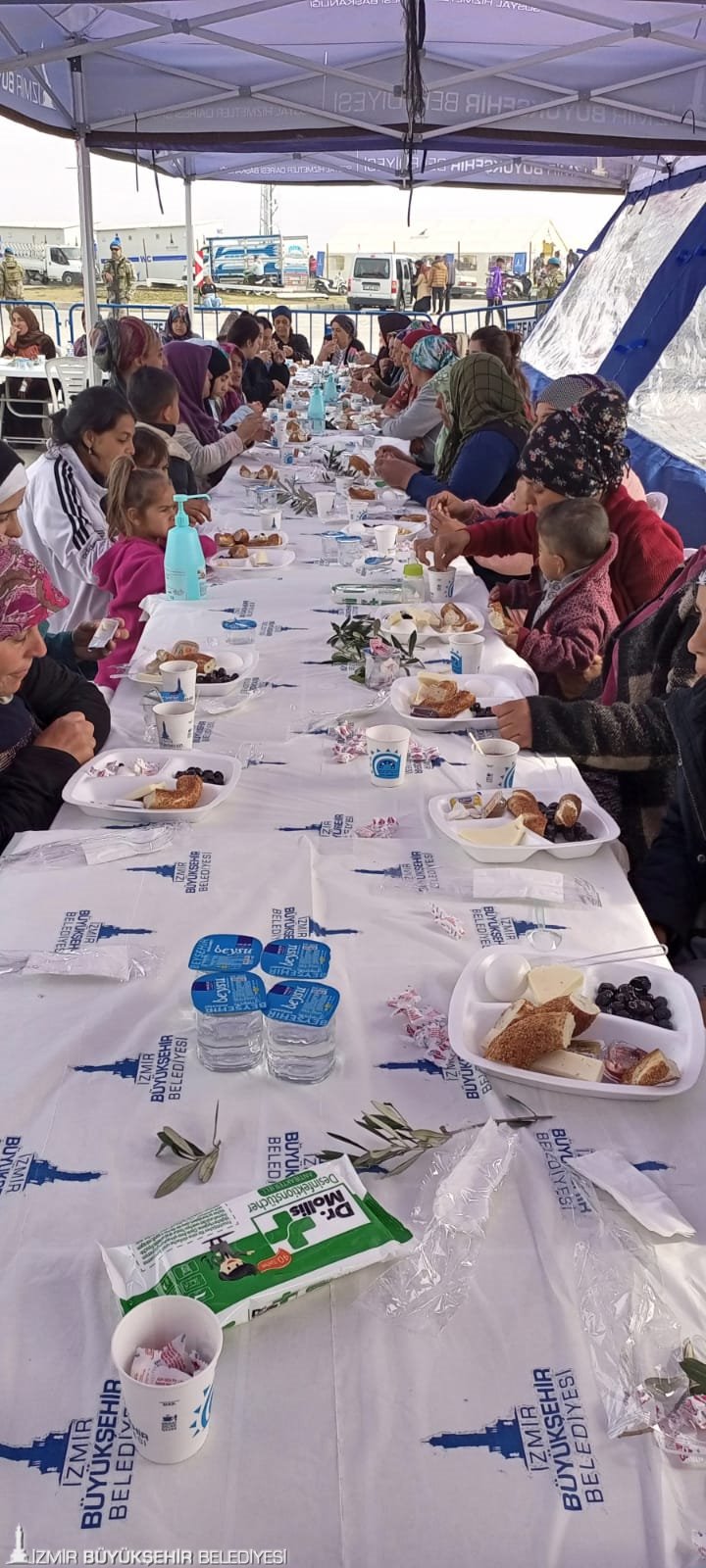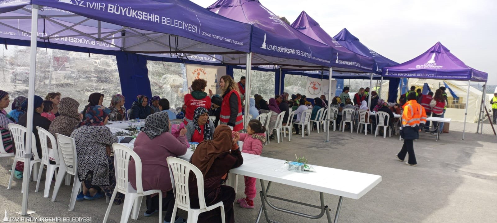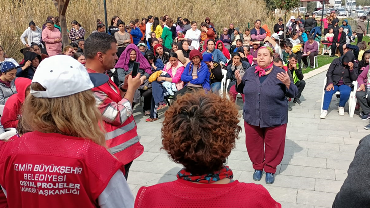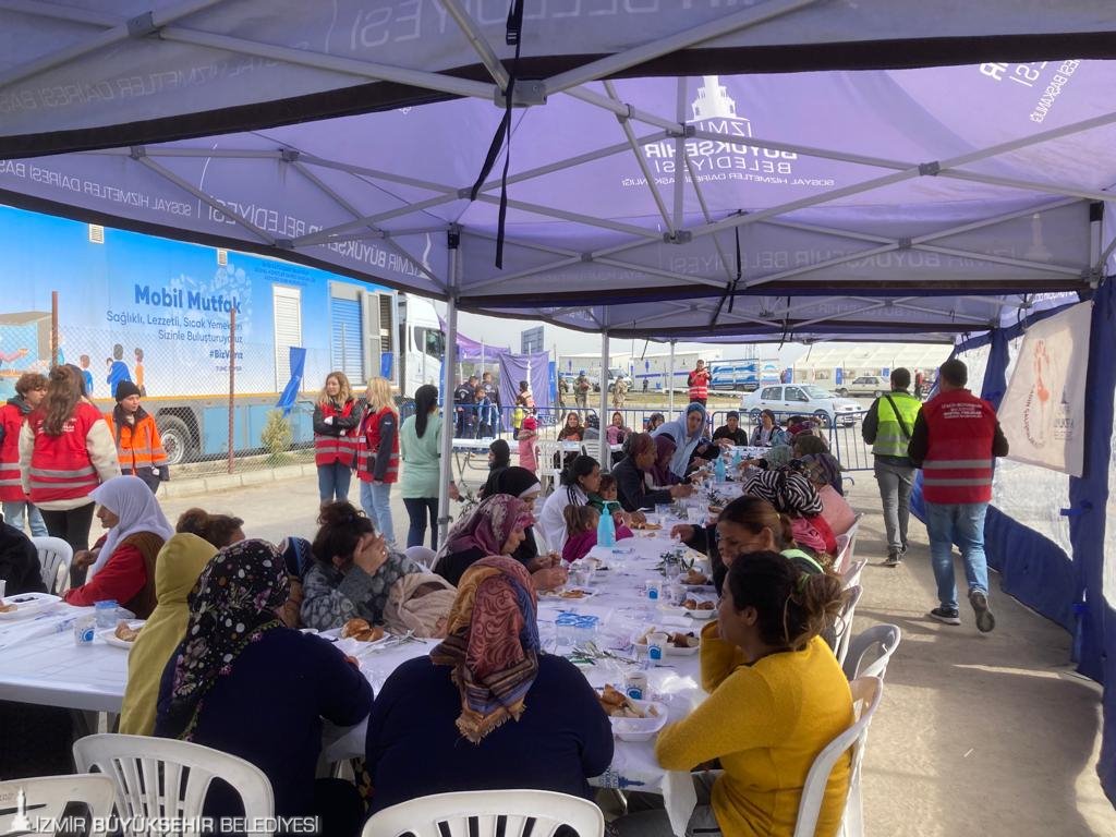 İzmir Büyükşehir Belediyesi, Hatay’da kurduğu çadır kentte yaşayan kadınların "8 Mart Dünya Kadınlar Günü’nü kutladı. Bu anlamlı günde kadınları yalnız bırakmayan Büyükşehir Belediyesi Sosyal Projeler Dairesi Başkanlığı ekipleri, kadınların temel ihtiyaçlarının yer aldığı hediyeleri dağıttı. Çadır kentin yanı sıra köyleri de ziyaret ederek kadınlarla buluşan Büyükşehir ekipleri, depremzedelerin yaralarını dayanışmayla sarmaya çalıştı. Afetin ilk gününden bu yana kadınlar için dayanışmayı büyüttüklerini dile getiren İzmir Büyükşehir Belediyesi Sosyal Projeler Dairesi Başkanı Anıl Kaçar, “6 Şubat’tan bu yana Büyükşehir Belediyesi’nin bütün personeliyle depremzedelerin hizmetindeyiz. Vatandaşlarımızın hem maddi hem de manevi tüm ihtiyaçlarıyla yakından ilgileniyoruz. Psikososyal desteklerimizi aksatmadan yürütüyoruz. Çadır kentte kurduğumuz Masal Evi’yle ise çocukların gülümsemelerini sağlıyoruz” dedi.