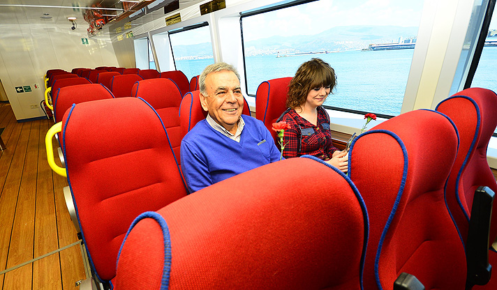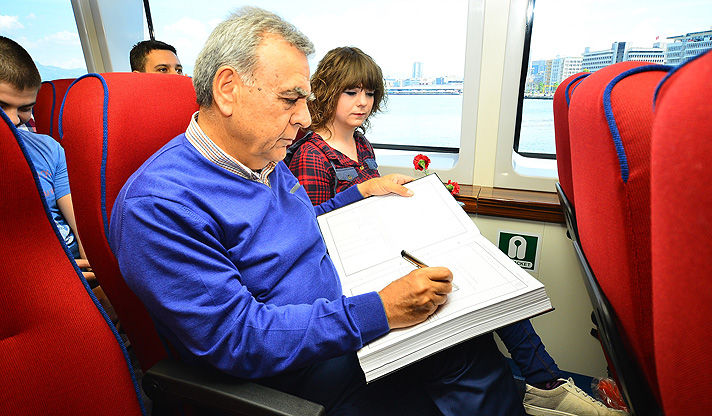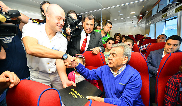 İzmir Büyükşehir Belediyesi’nin Yalova Özata Tersanesi’nde 117 milyon Euro’ya yaptırdığı 15 gemiden ilki olan “Çakabey”, Körfez’deki ilk seferini Konak-Karşıyaka arasında yaptı. Saat 11.40’da Konak’tan demir alan Çakabey’in ilk seferine İzmir Büyükşehir Belediye Başkanı Aziz Kocaoğlu katıldı. İzmirlilerin büyük ilgi gösterdiği ilk seferinin ilk yolcusu Esra Şener isimli genç kız oldu. Başkan Aziz Kocaoğlu, günün anısına Şener’e plaket verdi. İlklerin yaşandığı yolculukta Çakabey’in kaptanı Çağrı Gökhan Tortum, gemi hareket etmeden önce Başkan Kocaoğlu’na sürpriz yaparak seyir defteri olarak bilinen “Gemi Jurnali”ni imzalattı. Çakabey’in ilk seferine katılmanın heyecanını yaşayan yolcular, Başkan Kocaoğlu ile bol bol fotoğraf çektirdi. 10 dakika süren yolculuğun ardından Çakabey’in yanaştığı Karşıyaka İskelesi’nde, Başkan Aziz Kocaoğlu’nu, Karşıyaka Belediye Başkanı Hüseyin Mutlu Akpınar karşıladı.