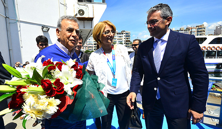 Çakabey’in tüm İzmirlilere hayırlı olmasını dileyen Başkan Aziz Kocaoğlu, 2017 yılı sonuna kadar 15 geminin de devreye gireceğini söyledi. 84 gün önce İzmir’e gelen Çakabey’in incelemeleri tamamlandıktan sonra sefere çıktığını kaydeden Başkan Kocaoğlu, “Sanayide ‘çocukluk hastalığı’ diye tabi edilen eksiklikleri vardı. Bunların hepsi giderildi ve her türlü belgeleri alındı. Bugün de ilk seferini 11.40’da Konak İskelesi’nden yaptı. Çakabey ilk prototip olduğu için diğer gemilerde neyin eksik olduğu, şartnameye göre neyin yapılması gerektiği hem firma hem bizim arkadaşlarımız tarafından biliniyor. Bundan sonra kontroller ve kabul aşamaları çok daha süratli olacak. İkinci gemimiz de önümüzdeki haftalarda gelecek” diye konuştu.