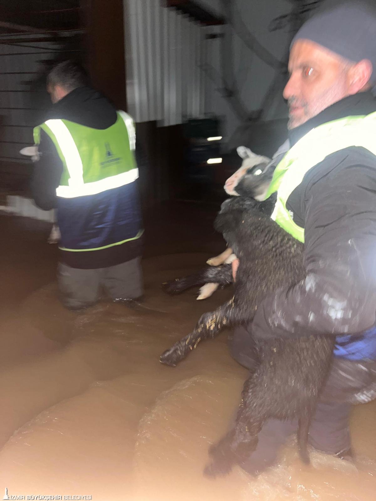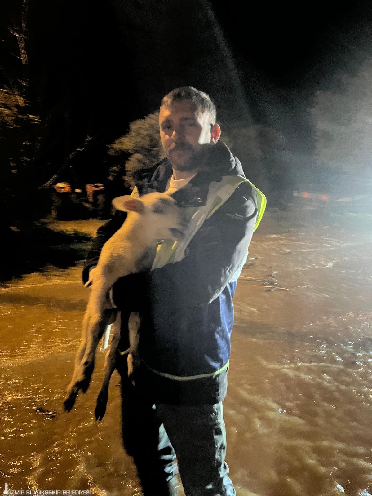 İzmir Büyükşehir Belediyesi İtfaiye Dairesi Başkanlığı ekipleri, Torbalı’nın Göllüce Mahallesi’nde sağanak yağış nedeniyle su basan bir ahırda mahsur kalan koyun ve tavukları kurtarmak için seferber oldu. Ekipler, dikkatli ve özverili bir şekilde hayvanları tahliye ederken, hayvanların yem ve su ihtiyaçlarını da karşıladı. Bir itfaiye erinin koyunları elleriyle beslemesi, bu zorlu koşullarda bile insan ve hayvan arasında güçlü bir bağın varlığını gösterdi. Aynı zamanda, bölgedeki suyun tahliyesi için su çekme çalışmaları da aralıksız sürdürüldü.