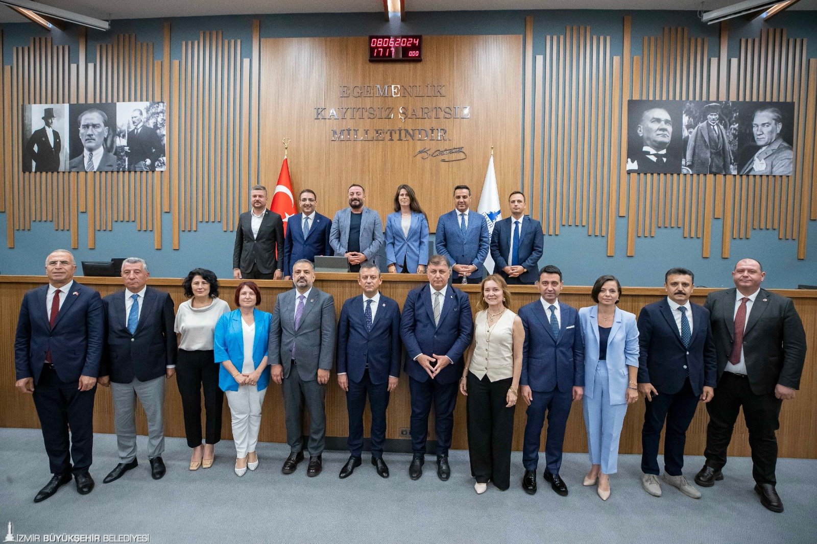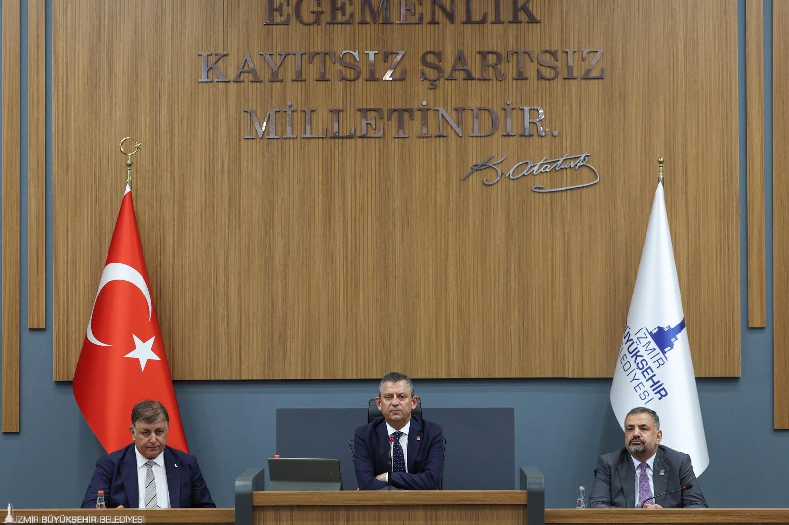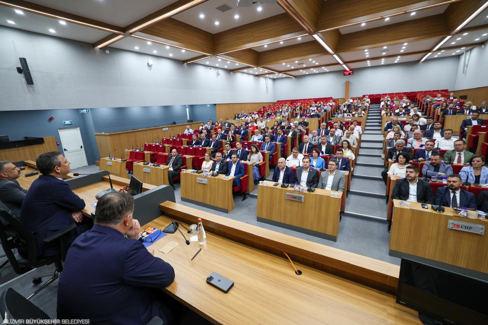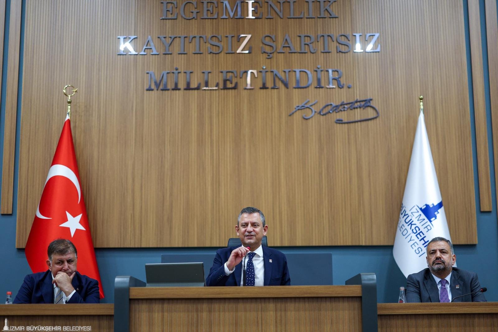 Cumhuriyet Halk Partisi (CHP) Genel Başkanı Özgür Özel, İzmir Büyükşehir Belediye Başkanı Dr. Cemil Tugay, CHP İzmir İl Başkanı Şenol Aslanoğlu, ilçe belediye başkanları ve Büyükşehir Belediyesi meclis üyeleri ile toplantı yaptı. Kültürpark’taki İzmir Büyükşehir Belediyesi Melis Salonu'nda düzenlenen basına kapalı toplantıda milletvekilleri, il yönetim kurulu üyeleri, il disiplin kurulu üyeleri ve ilçe başkanları da hazır bulundu.