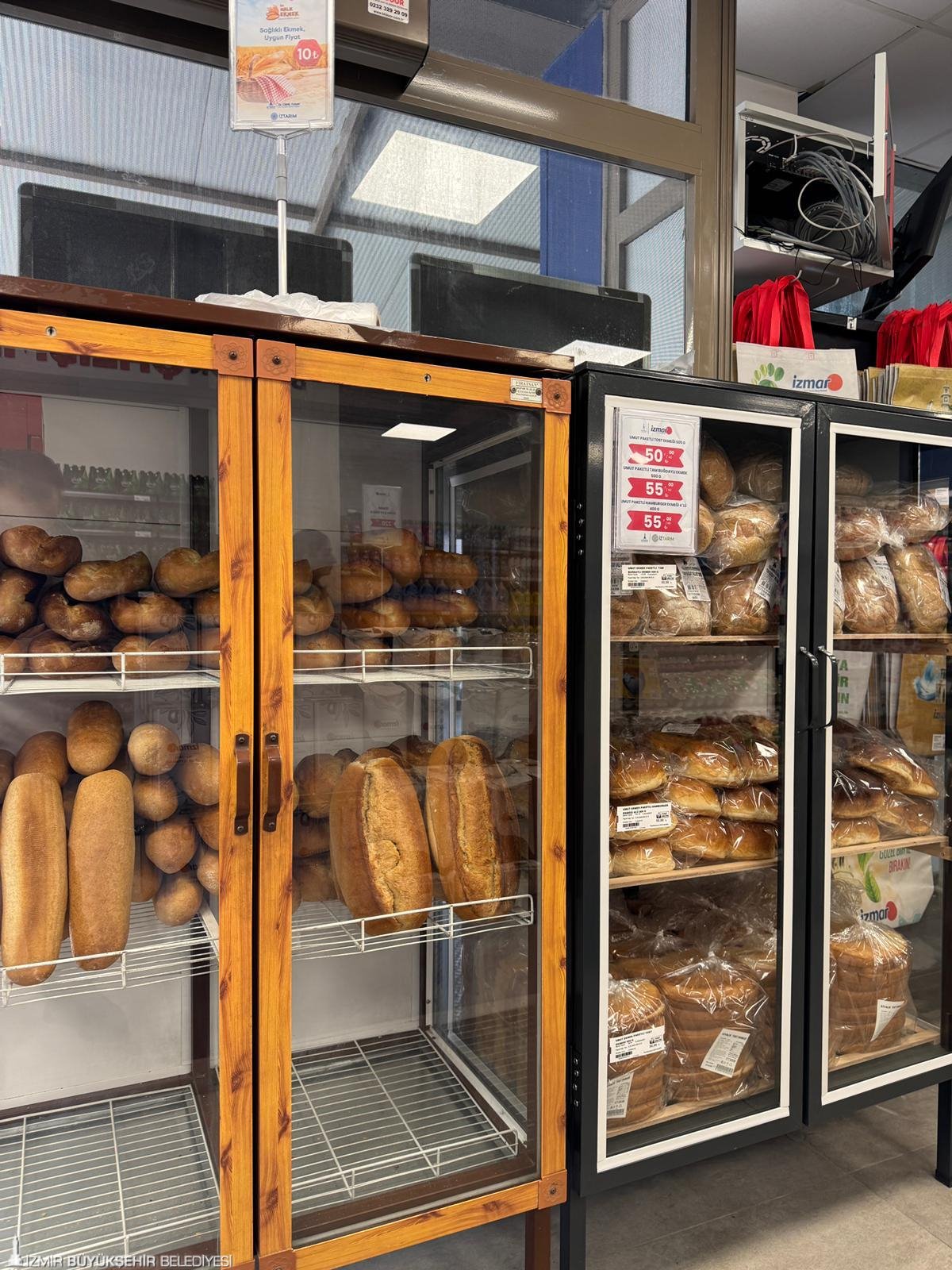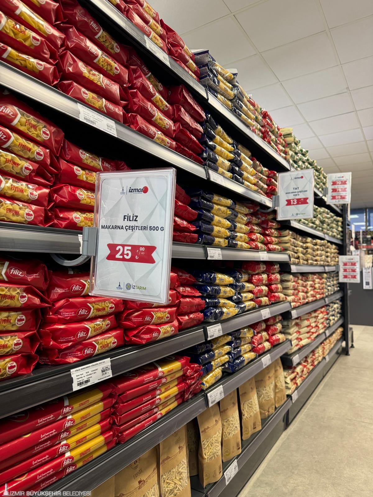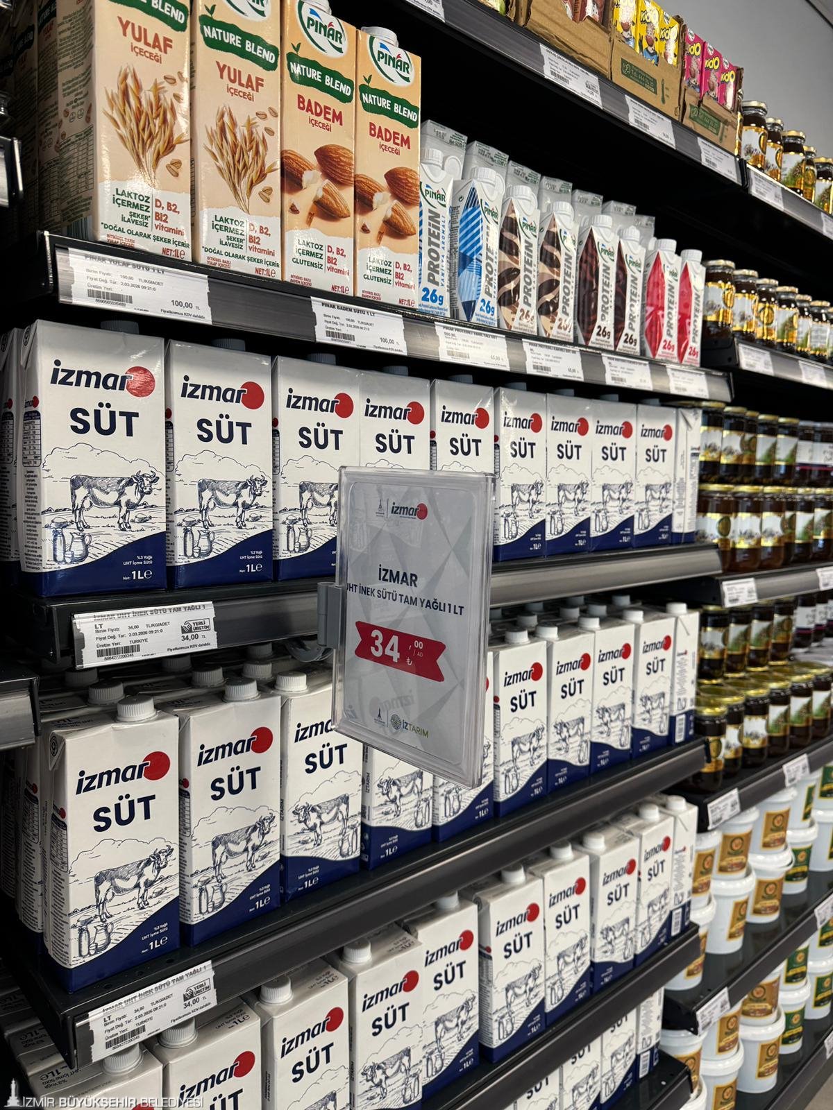 İZMAR’ın yeni mağazasında İZTARIM’ın Bayındır Süt Fabrikası’nda üretilen İZMAR markalı tam yağlı taze beyaz peynir, ilk kez satışa çıktı. Piyasada yarım kilosu 300 liraya kadar çıkan beyaz peynir, 120 liradan vatandaşların beğenisine sunuldu. Tamamen yerli üreticiden alınan sütlerle hazırlanan İZMAR markalı taze kaşar peyniri, tereyağı, yoğurt, UHT süt, ayran ile Ödemiş Et Entegre Tesisi’nde işlenen et ve et ürünleri, Şaşal Su ve Halk Ekmek ürünleri İZMAR raflarında yerini aldı.
