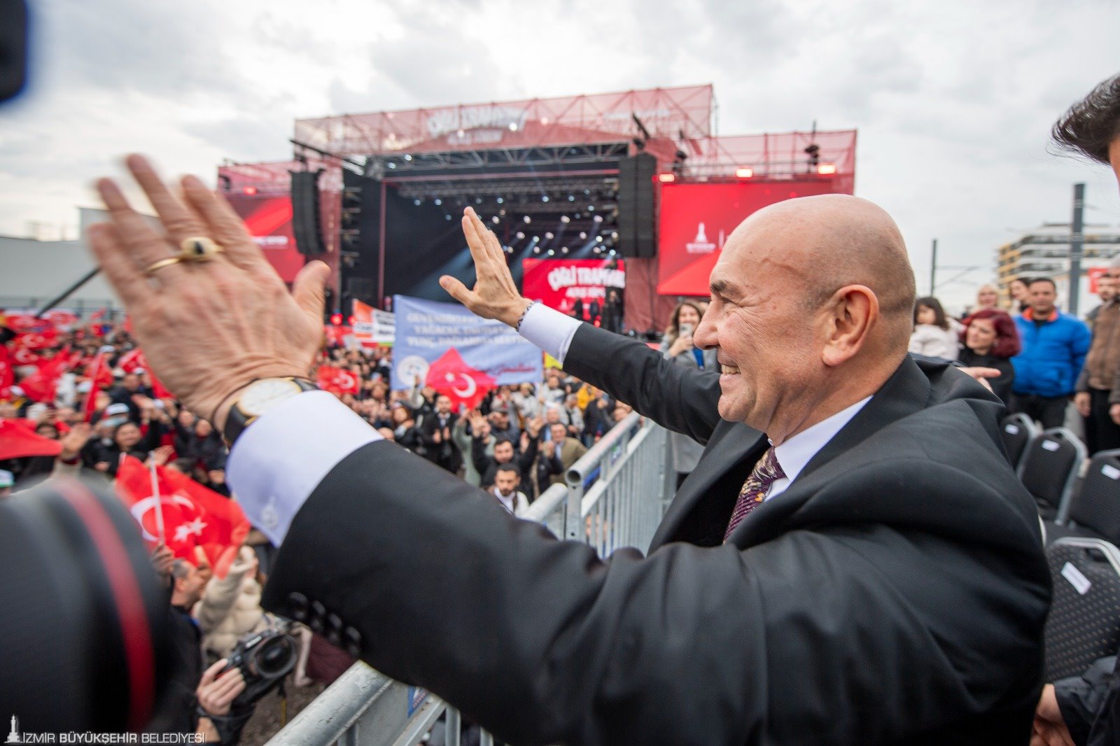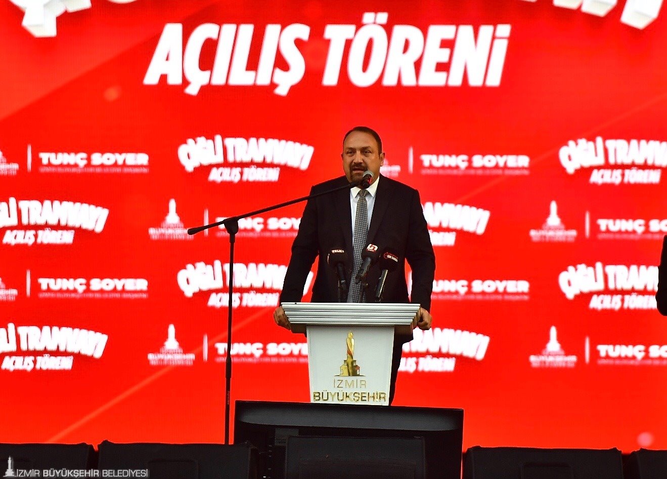 Başkan Soyer ayrıca, “Bugün, İzmir tarihinin dönüm noktalarından biri. 183 milyon euroluk göz kamaştıran bir yatırımla İzmir'e kazandırdığımız Çiğli Tramvayı’nın kurdelesini kesiyoruz. Tramvayın inşaatını kendi dönemimizde başlatmıştık, yine kendi dönemimizde tamamladık. Narlıdere Metrosu’nu bir önceki dönemden yüzde 12 düzeyinde devralmıştık, yüzde yüzünü bitirdik. Bir kaç hafta sonra 287 milyon euroluk yatırımla Narlıdere Metrosu’nu açarak cumhuriyetimizin 100’üncü yılına armağan etmek üzere yine birlikte olacağız. O metro Buca’ya gelecek dedik. Getiriyoruz. 9 Ocak’ta Buca’da, “dev köstebek” denilen tünel sondaj makinelerini toprağın altına indirdik. İzmir tarihinin en büyük raylı sistem projesi olan Buca Metrosu’nun yapımını 765 milyon euroluk bir yatırımla, son sürat devam ettiriyoruz. Bu dev raylı sistem yatırımımızın her bir katresinde, her metresinde, her adımında sarayın değil, halkın alın teri var. Kimseye eyvallahı olmayan, kimsenin önünde el bağlamayan alnı ak, başı ak İzmir'in emeği var. Mustafa Kemal'in evlatlarının emeği vardır. Bu tramvayın temelinde hırsızlık ve haramilik yok. Dürüstlük ve cesaret var. Bizim yatırımlarımızın önünde adam kayırmacılık, rantçılık yok. Birlik var, beraberlik var. Bu meydan muhterislerin ve kifayetsizlerin meydanı değil. Bileğiyle, aklıyla ve vicdanıyla mücadele edenlerin meydanıdır” ifadelerini kullandı.