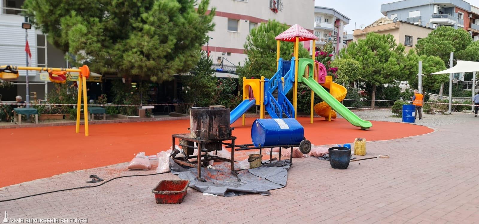 İzmir Büyükşehir Belediyesi, yurttaşların yaşam konforunu yükseltmek için parklarda yenileme çalışmalarını sürdürüyor. Son altı ayda 14 ilçede 84 oyun parkı ve spor alanının zemini yenilenirken, parklar çocuklar ve kentliler için daha sağlıklı, güvenli ve konforlu hale getirildi. Park ve Bahçeler Dairesi Başkanlığı ekipleri parklarda ve spor alanlarında ekonomik ömrünü tamamlayan ve çeşitli nedenlerle tahrip olan eski malzemeleri sökerek tek parça kauçuk zeminle kapladı. Oyun gruplarında ve spor aletlerinde tespit edilen hasarlı alanlar ise onarıldı.