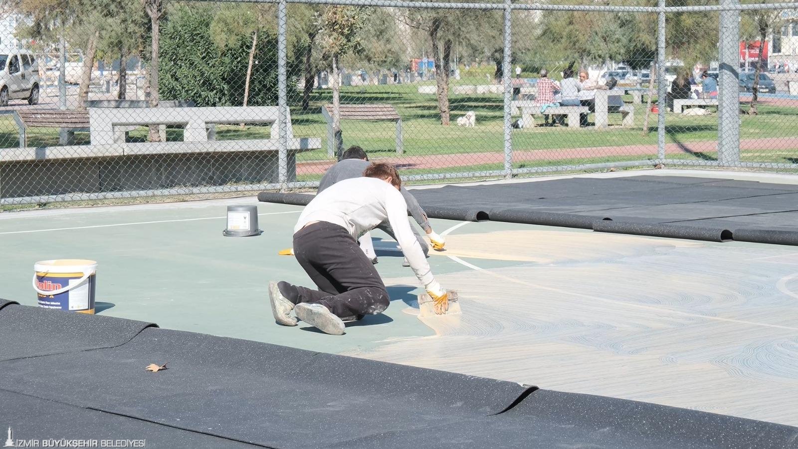 Park ve Bahçeler Dairesi Başkanlığı Yeşil Alanlar Yapım Şube Müdürlüğü Şefi Ceren Durak, “Başkanımız Cemil Tugay’ın talimatları doğrultusunda kent genelindeki çocuk parkları ve spor oyun alanlarını daha güvenli hale getirebilmek için başlatmış olduğumuz zemin yenileme çalışmalarımız devam ediyor. Bu çalışmalar kapsamında, mahalle parklarından rekreasyon alanlarına kadar pek çok yerde hem ekonomik ömrünü tamamlamış zeminleri yenilerken hem de yeni alanlar oluşturuyoruz. Böylece her kesimden yurttaşlarımızın parklarımızı güvenli ve konforlu bir şekilde kullanmasını sağlıyoruz. Nisan ayından bu yana 14 ilçede 31 bin 200 metrekare zemin yenileme çalışması yaptık. Önümüzdeki iki aylık süreçte ise çocuk oyun alanları spor sahaları ve yürüyüş alanları olmak üzere 12 bin metrekarelik zemin yenileme çalışması yapacağız” şeklinde konuştu.