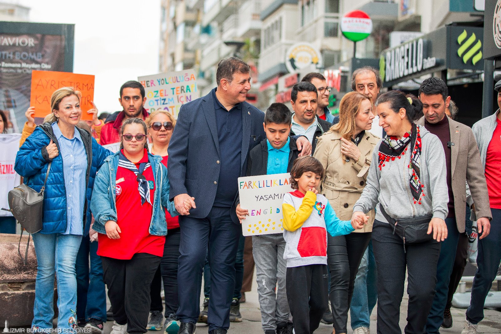 İzmir Büyükşehir Belediye Başkanı Dr. Cemil Tugay, otizmli bireylerin yaşadığı sorunlara dikkat çekmek amacıyla KEDİ Otizm Derneği (Kabul, Eşitlik, Dahil Olma, İstihdam) tarafından düzenlenen 2. İzmir Otizm Yürüyüşü'ne katıldı. Alsancak Gündoğdu Meydanı'nda başlayan yürüyüşe Konak Belediye Başkanı Nilüfer Çınarlı Mutlu, Bayraklı Belediye Başkanı İrfan Önal ile otizmli bireyler ve aileleri katıldı. Programda yurttaşlar yaşadıkları sorunlara dikkat çekmek için üzerinde “Otizmliler de çalışabilir, istihdam et”, “Farklılıklar yaşamın rengidir”, “Beni anlayın istiyorum”, “Otizm hayata farklı açıdan bakmaktır”, “Beni övme haklarımı ver” yazılı dövizler taşındı.