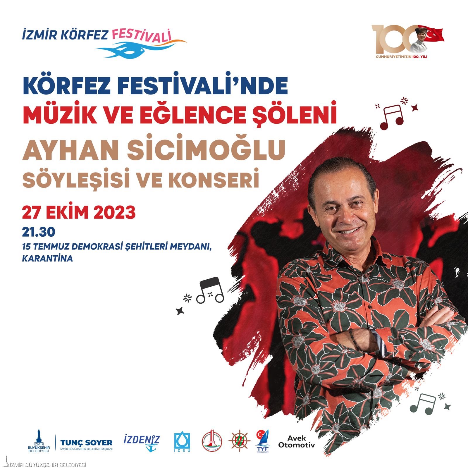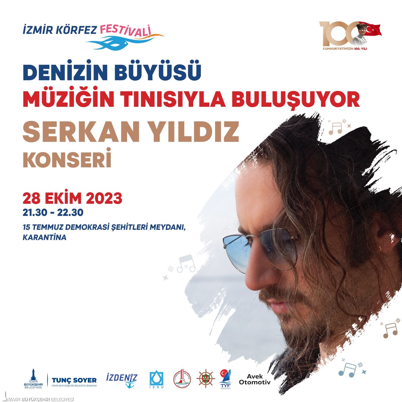 28 Ekim Cumartesi günü ise kulaçlar 100. Yıl Açık Su Yüzme Cumhuriyet Kupası için atılacak. Saat 09.00’da Narlıdere-Güzelbahçe sahil yolundaki Maltepe otobüs durağı arkasından start verilecek yarışa, İzmir Büyükşehir Belediye Başkanı Tunç Soyer ile yaklaşık 300 kişinin katılması bekleniyor. Ayrıca gün boyunca 7-15 yaş arası 400 çocuğun katılacağı Optimist ve Laser Yelken Yarışmaları Avek Karşıyaka Yelken Kulübü’nde, 100. Yıl Kano-Kürek Cumhuriyet Kupası Bostanlı Balıkçı Barınağı ile Karşıyaka Belediye Tesisleri arasında, Dragon Yarışmaları ise İnciraltı İzmir Kayıkları Kano Tesisleri’nde gerçekleştirilecek. 15 Temmuz Demokrasi Meydanı’nda ise saat 19.30’da Stalk Band, saat 21.30’da Serkan Yıldız konseri sanatseverlerin beğenisine sunulacak.