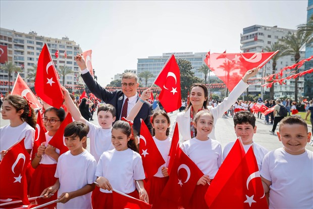 Ulu Önder Mustafa Kemal Atatürk’ün tüm dünya çocuklarına armağan ettiği 23 Nisan Ulusal Egemenlik ve Çocuk Bayramı İzmir’de coşkuyla kutlandı. Resmi kutlamaların adresi Cumhuriyet Meydanı oldu. Törene İzmir Valisi Dr. Süleyman Elban, İzmir Büyükşehir Belediye Başkanı Dr. Cemil Tugay ile eşi Öznur Tugay, Ege Ordusu ve Garnizon Komutanı Orgeneral İrfan Özsert, siyasi parti temsilcileri, ilçe belediye başkanları, rektörler ve çok sayıda yurttaş katıldı.