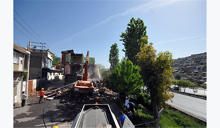 Kentsel dönüşüm projeleri ile kenti “dönüştüren” İzmir Büyükşehir Belediyesi, Kadifekale ve Gürçeşme’nin ardından Yeşildere’de de yıkım çalışmalarına başladı. Heyelan bölgesinde bulunan Kadifekale’de 1874, Gürçeşme’de ise 50 binayı kamulaştırarak yıkan İzmir Büyükşehir Belediyesi, Yeşildere’de yer alan 153 yapının yıkılması çalışmalarına başladı. Kadifekale-Konak kentsel yenileme projesinin devamı olan 2 hektarlık alandaki binaların yıkımlarının en kısa sürede tamamlanarak bölgenin yeşillendirilmesi hedefleniyor.