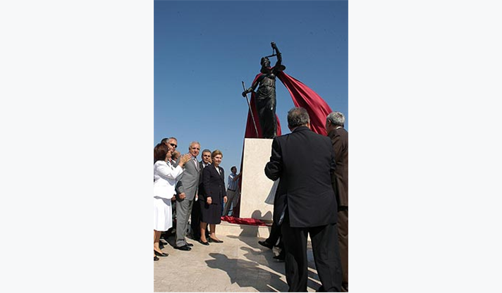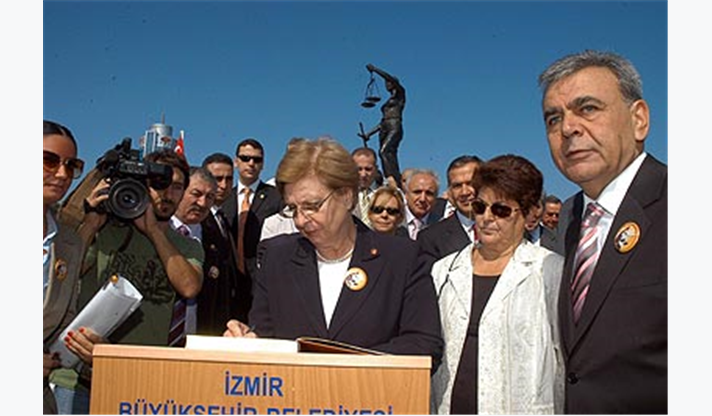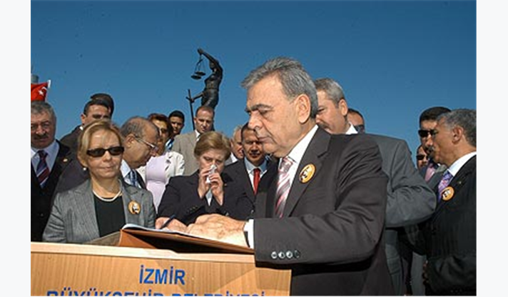 Törende konuşan İzmir Büyükşehir Belediye Başkanı Aziz Kocaoğlu, ülkemizde ve dünyada nefretle kınanan bu saldırının, sadece Danıştay’ı değil, tüm yargı ve adaleti, adalet temelinde yükselen devleti, insanımızı ve çağdaşlığı hedef aldığını belirterek, “Bu anıt, Türk yargısının cumhuriyet kazanımlarını korumak ve ileriye götürmek yolundaki, sarsılmaz iradesine olan inancımızın bir ifadesi olarak dikilmiştir” dedi. Başkan Kocaoğlu şöyle devam etti: “Bu anıtın İzmir’e dikilmesi, elbette bir tesadüf değildir. İzmir halkı, Danıştay’a yapılan saldırıya, hiç bir siyasi görüş farkı gözetmeksizin, büyük tepki göstermiştir. İzmir, çağdaş ve laik Türkiye’nin karşılığını, tam anlamıyla bulduğu bir kenttir. İzmir, yüce önder Mustafa Kemal Atatürk’ün kurduğu cumhuriyetin değerlerini, net olarak ortaya koyan bir fotoğraftır. İzmirliler, aydınlık yüzlü, çağdaş ve duyarlı insanlardır. İşte bu anıt da, İzmir halkının ortak duyarlılığının bir simgesi olacaktır. İzmir, halkı ile, siyasi parti temsilcileri ve bütün sivil toplum örgütleri ile, Türk Yargısı’nın yanındadır. Bütün Türkiye Cumhuriyeti vatandaşlarının da böyle düşündüğünü, çok iyi biliyoruz”