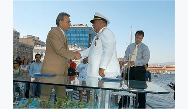 Bir liman şehri ve denizciliğin doğduğu yer olan İzmir’de Büyükşehir Belediyesi ile böyle bir işbirliğine gitmenin onur verici olduğunu kaydeden Güney Deniz Saha Komutanı Koramiral Alev Gümüşoğlu da, “Denizci bir millet olmamıza rağmen başkalarının hayatlarına imreniyoruz. Denizciliğin gelişmesi için çaba harcamalıyız. Özellikle çocuklarımızı bu konuda yetiştirmeli, onlara denizciliği sevdirmeliyiz. Yapılacak Deniz Müzesi için 1 fırkateyn ve 1 denizaltı bağışladık. İçinde kütüphane, sergi salonları ve üniversitelerin denizcilik tarihi ile ilgili araştırma yapacağı bir müze planlıyoruz. Bu çalışmanın ilk ayağı olan protokolü imzalamaktan mutluluk duyuyoruz” dedi.
