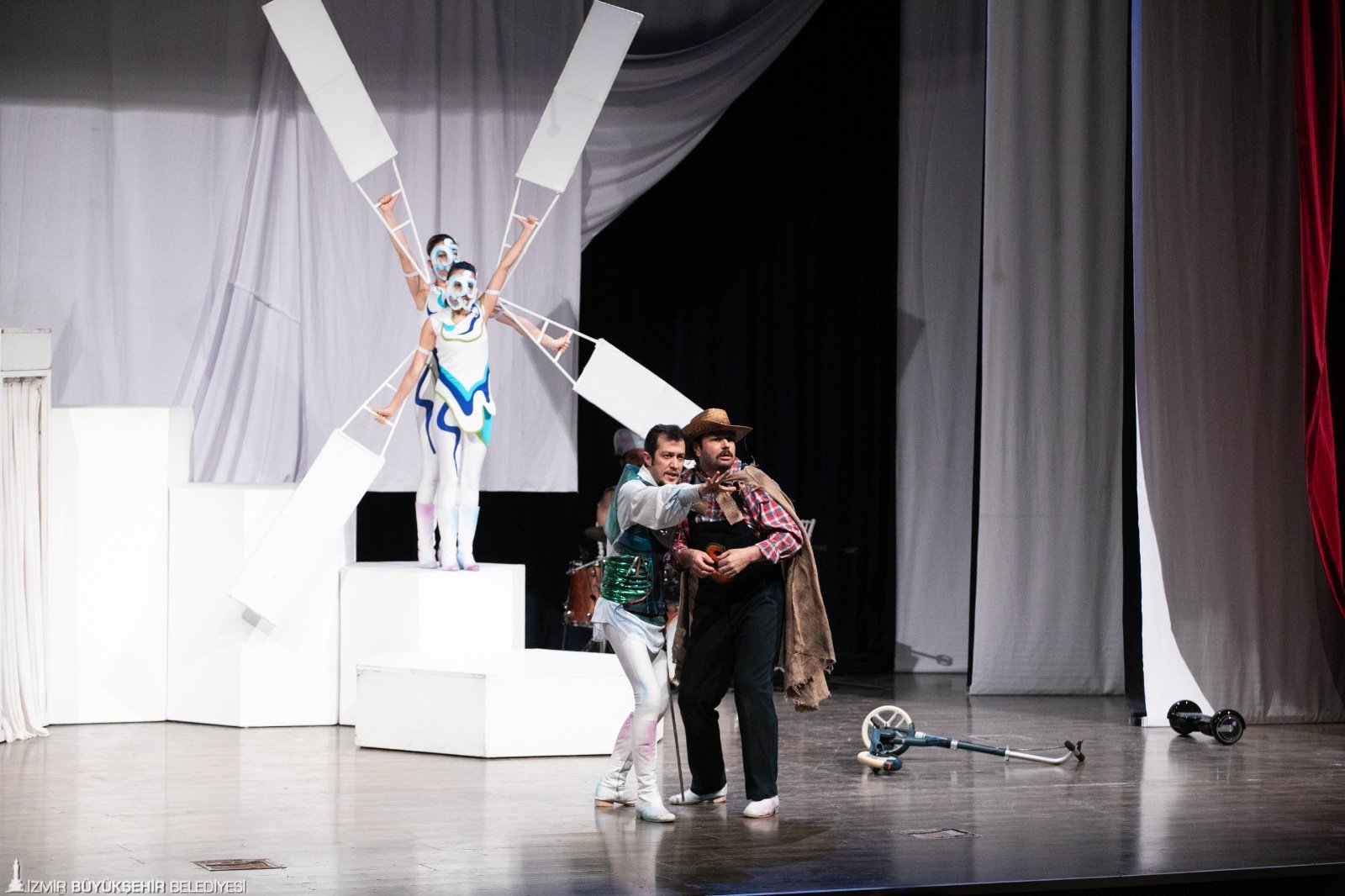 Genel Sanat Yönetmenliğini Levent Üzümcü’nün üstlendiği İzBBŞT bünyesinde, Ahmet Ayaz Yılmaz tarafından yazılan ve yönetilen oyun; sadece bir şövalye hikâyesi değil, çocuklara ve ailelere yönelik "kendilik meselesi" üzerine odaklanan modern bir anlatı sunuyor. Oyunda, başkahraman Don Kişot’un iyilik ve adalet peşindeki yolculuğu; savaşmanın ötesinde anlamanın, dinlemenin ve öğrenmenin gücüyle yeniden yorumlanıyor.