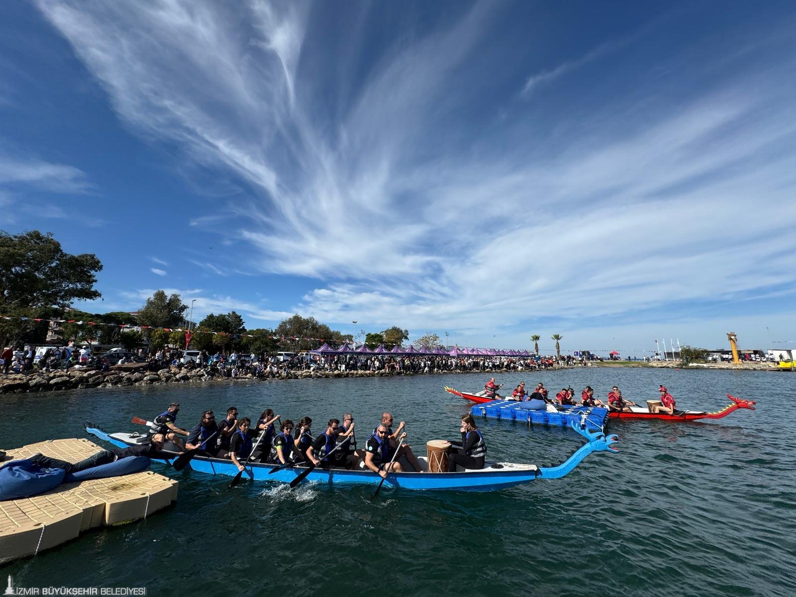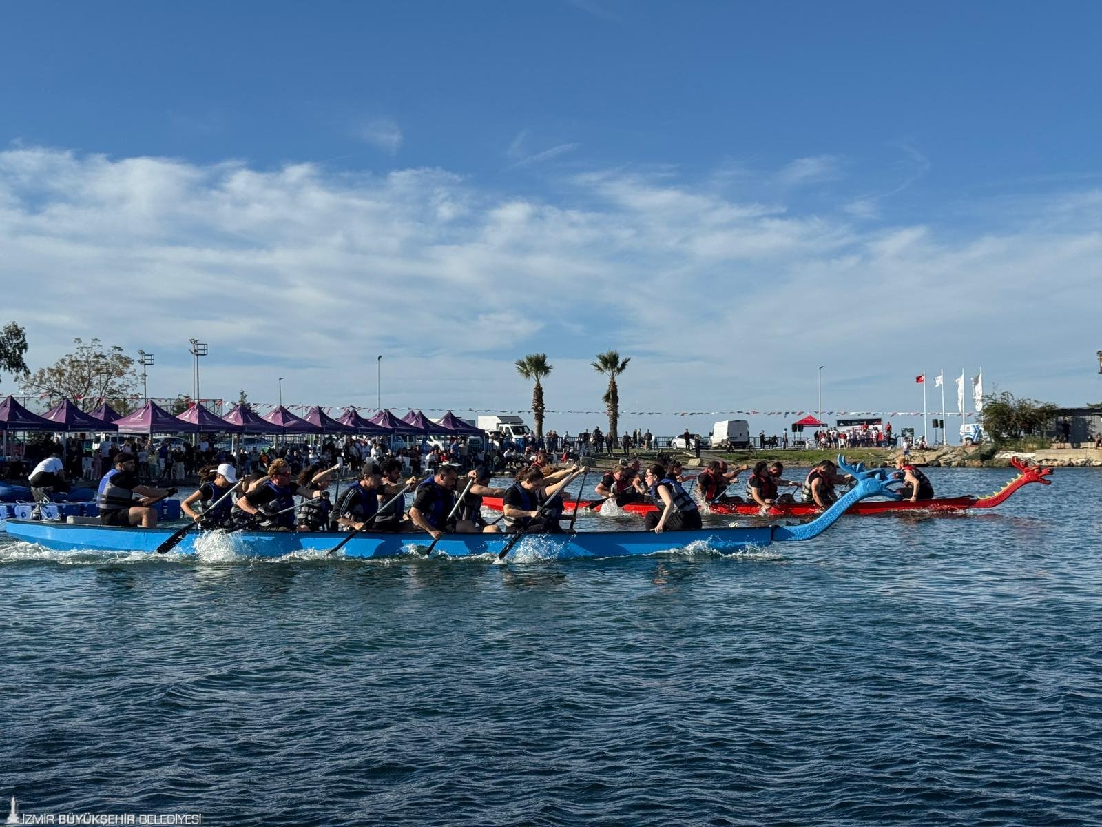 İzmir Büyükşehir Belediyesi tarafından bu yıl üçüncüsü düzenlenen Dragon Tekne Yarışması, renkli görüntülere sahne oldu. Belediye çatısı altındaki birimlerin İzmir Körfezi’nde kürek çektiği yarış, izleyenlere de heyecanlı anlar yaşattı. 28 takımın katıldığı yarış, kıyasıya rekabetin yanı sıra centilmenlik ruhunun da en güzel örneklerine sahne oldu. Balçova İnciraltı sahilinde yerini alan takımlar 250 metrelik parkurda, kazanmak için kürek çekti.