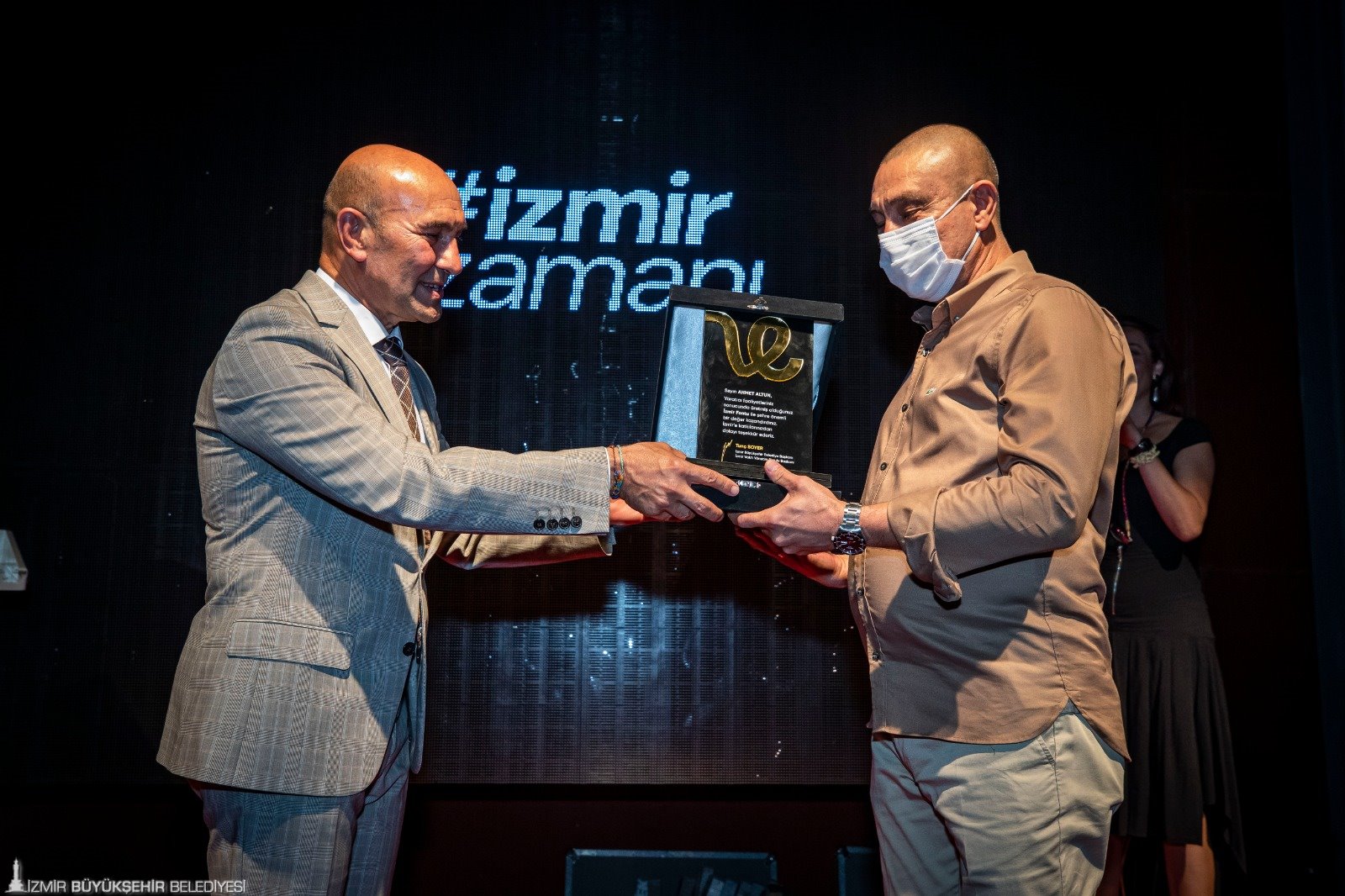 Konuşmaların ardından İzmir Büyükşehir Belediye Başkanı Tunç Soyer, İzmir Fontu’nun yaratıcısı tasarımcı Ahmet Altun’a teşekkür plaketi verdi. Sahnede kısa bir konuşma yapan Ahmet Altun, fon tasarlamanın sabır gerektiren bir iş olduğunu söyleyerek bu süreçte kendisine destek olan ailesine teşekkür etti. Konuşmaların ardından İzmir Fontu’nun tanıtımı yapıldı.