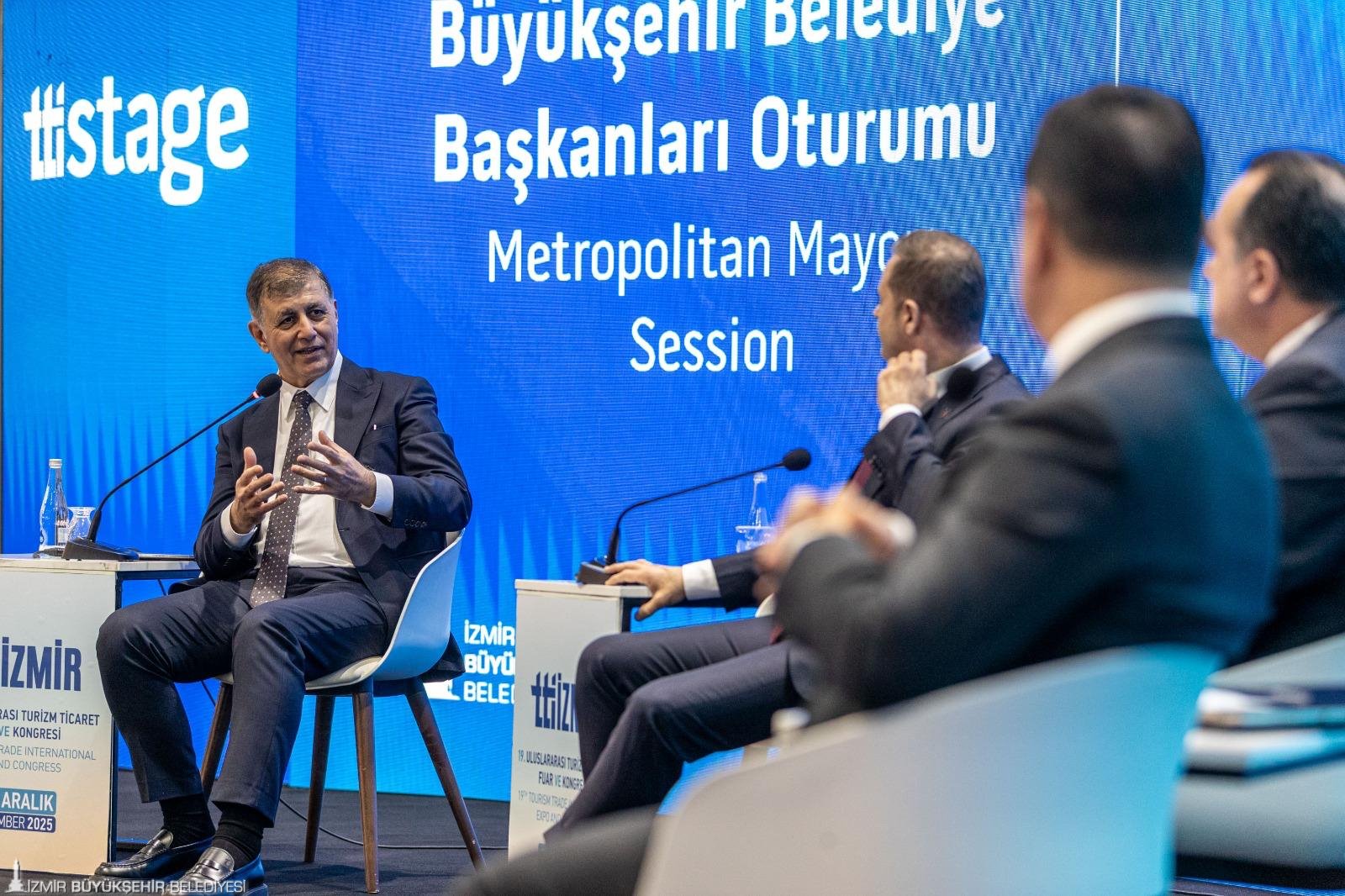 TTI Stage alanındaki oturumun açılışında konuşan İzmir Büyükşehir Belediye Başkanı Dr. Cemil Tugay, yerel yönetimlerin turizm sektörüne katkılarına değindi. Ege Bölgesi’nin Türkiye turizminin ana damarlarından biri olduğunu hatırlatan Başkan Tugay, “Turizmi geliştirmek için sorumluluğumuz büyük. Sizlere 2026–2030 Ortak Ege Vizyonu’muzdan söz etmek istiyoruz. Özellikle küresel iklim kriziyle mücadelemizde yerel yönetimlerin politikaları, kararları, uygulamaları, sürdürülebilir turizm için çok daha büyük önem kazanıyor. Turizm; doğa ve kültür olmak üzere iki zemin üzerinden yükselir. Her iki varlığımızı da korumak için sürdürülebilirliği, vazgeçilmez parçamız yapmak zorundayız. İklim krizine karşı ekolojik dengeyi korumak ve kültürel miras yönetimi için de bu çok önemli” dedi.