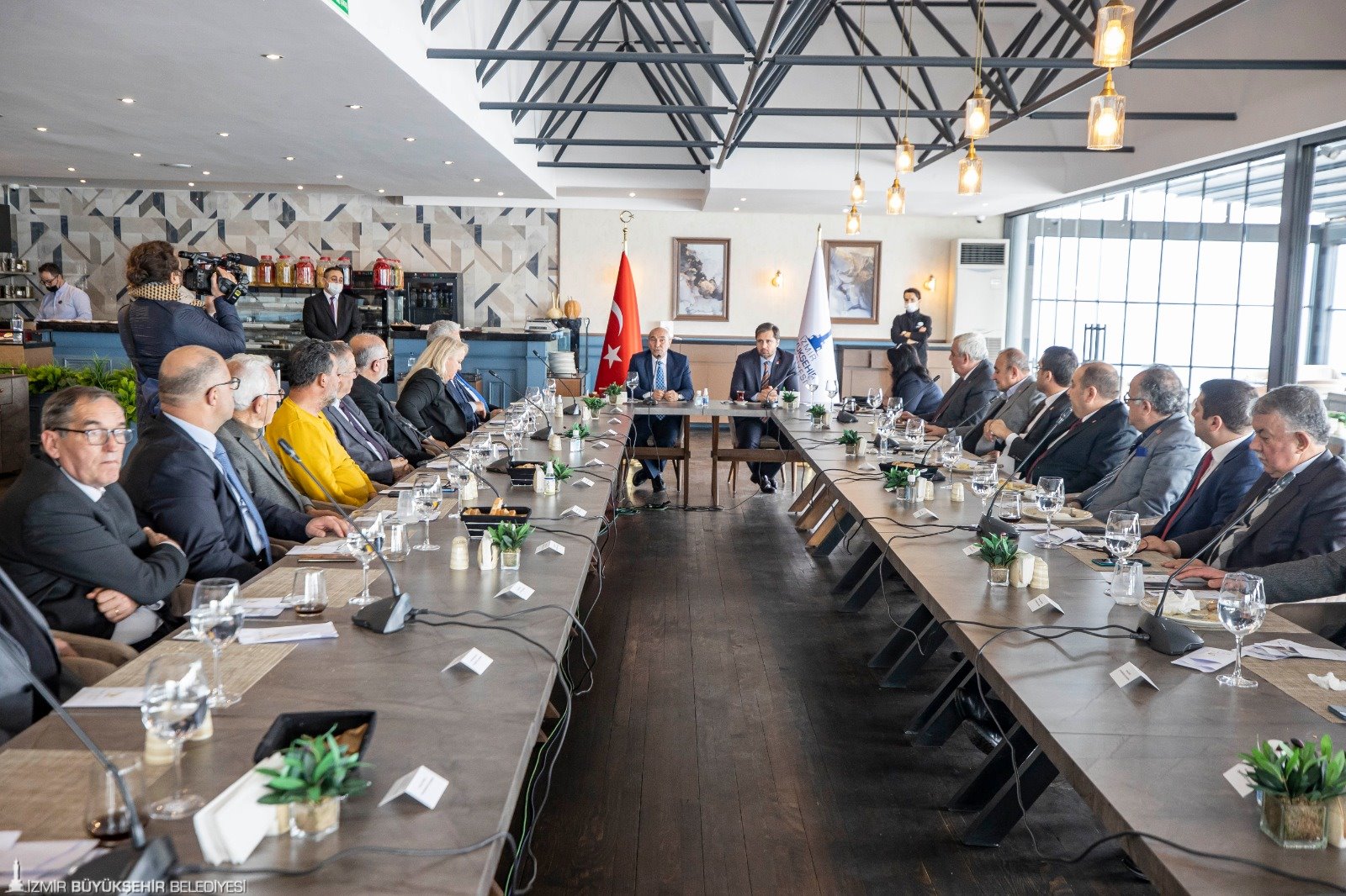 Sunum toplantısında kentsel dönüşüm, altyapı, üstyapı ve fen işleri, sosyal hizmetler ile İZSU çalışmaları konusunda geniş çapta bilgilendirme yapıldı. Başkan Tunç Soyer, “Bu toplantının iki amacı var. Birincisi teşekkür etmek. Buca Metrosu’nun temel atma töreninde tüm İzmir, tüm Türkiye’ye çok güzel mesajlar verdi. Bunu hep birlikte yaptık. Hepimizin göğsü kabardı. Hepimiz onur duyduk. Daha önemlisi Türkiye’ye umut verdik. Salgın ve kriz ortamında İzmir pırıl pırıl bir ışık saçtı. Bu da sizlerin emekleriyle oldu. İyi ki beraber çalışıyoruz. İyi ki güç birliği yapıyoruz. Hakikaten Türkiye’de bunun bir örneği daha yok. İkincisi seçim atmosferine girdik. Örgütlerimiz bizim yaptığımız çalışmaları çok iyi biliyor olmalı ki anlatabilsin” ifadelerini kullandı.