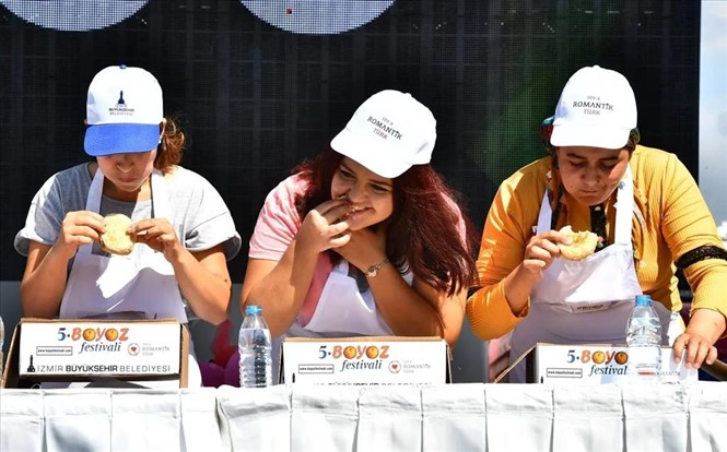 Kadınlar ve erkekler kategorisinde yapılan yarışmaya yüzlerce İzmirli rağbet gösterirken, yapılan çekilişle yarışacak 10’ar aday belirlendi. Kadın yarışmacılar 15 boyozu 5 dakika içinde bitirebilmek için kıyasıya yarıştı. Yarışmada birinciliği 8 boyoz yiyen 36 yaşındaki Ayşegül Aksoy kazandı. Erkekler kategorisinde ise rakipler oldukça iddialıydı. 20 adet boyuzu ilk bitirenin galip geleceği yarışmada birinciliği 9 boyoz yiyen 39 yaşındaki Turgay Yılmaz kazandı. Yarışmayı birinci bitirenlere İzmir Büyükşehir Belediyesi tarafından bisiklet hediye edildi. Festivalin organizasyonunda yer alan Radyo Romantik Türk DJ’lerinin müzikleri eşliğinde İzmirliler keyifli bir gün geçirdi.