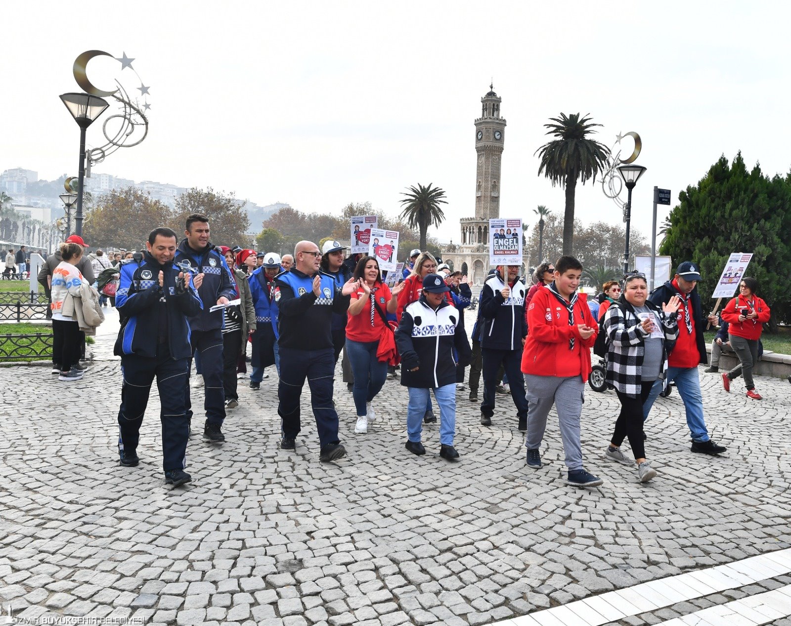 İzmir Büyükşehir Belediyesi Zabıta Dairesi Başkanlığı ekipleri ile İzmir Büyükşehir Belediyesi Engelli Hizmetleri Şube Müdürlüğü, 3 Aralık Dünya Engelliler Günü’nde farkındalık etkinliği düzenledi. Fiziksel, zihinsel, ortopedik engellilerin yanı sıra down sendromlu ve otizmli bireylerle birlikte Konak’tan Pasaport Vapur İskelesi’ne doğru yürüyen grup yürüyüş esnasında yurttaşlara engellilerin hayatını kolaylaştırmak için gerekli bilgilerin yer aldığı broşür dağıttı.
