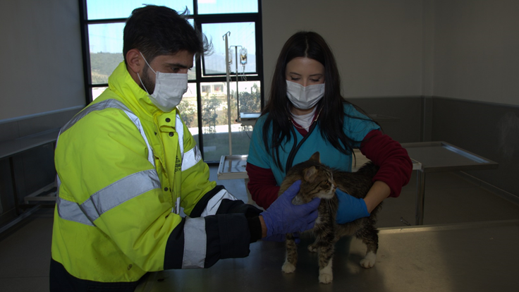 Veterinerlik İşleri Şube Müdürü Umut Polat, ekiplerin yaklaşık 300 kedi ve köpeği enkazdan kurtardığını belirtti. Osmaniye’de 3 kedi, Hatay’da 9 köpek ve iki muhabbet kuşunun enkazdan çıkarıldıktan sonra sahiplerine ulaşılamadığı için İzmir’e getirildiğini söyleyen Umut Polat, “İzmir’e kedi köpek ve kanatlı hayvanlardan oluşan bir grup geldi. Bakımlarına başladık. Tedavilerini gerçekleştirdik. Sahipsiz bu canların travmalarını atlatması için çalışmalar yapacağız. Özellikle korkularını, tedirginliklerini gidermek için sosyalleşmelerini sağlayacağız. Bu canlılarımızın sahiplerine ulaşmaya çalışacağız. Ulaşmadıklarımızı burada misafir ederek sıcak bir yuvaya kavuşmaları için çalışacağız” dedi.