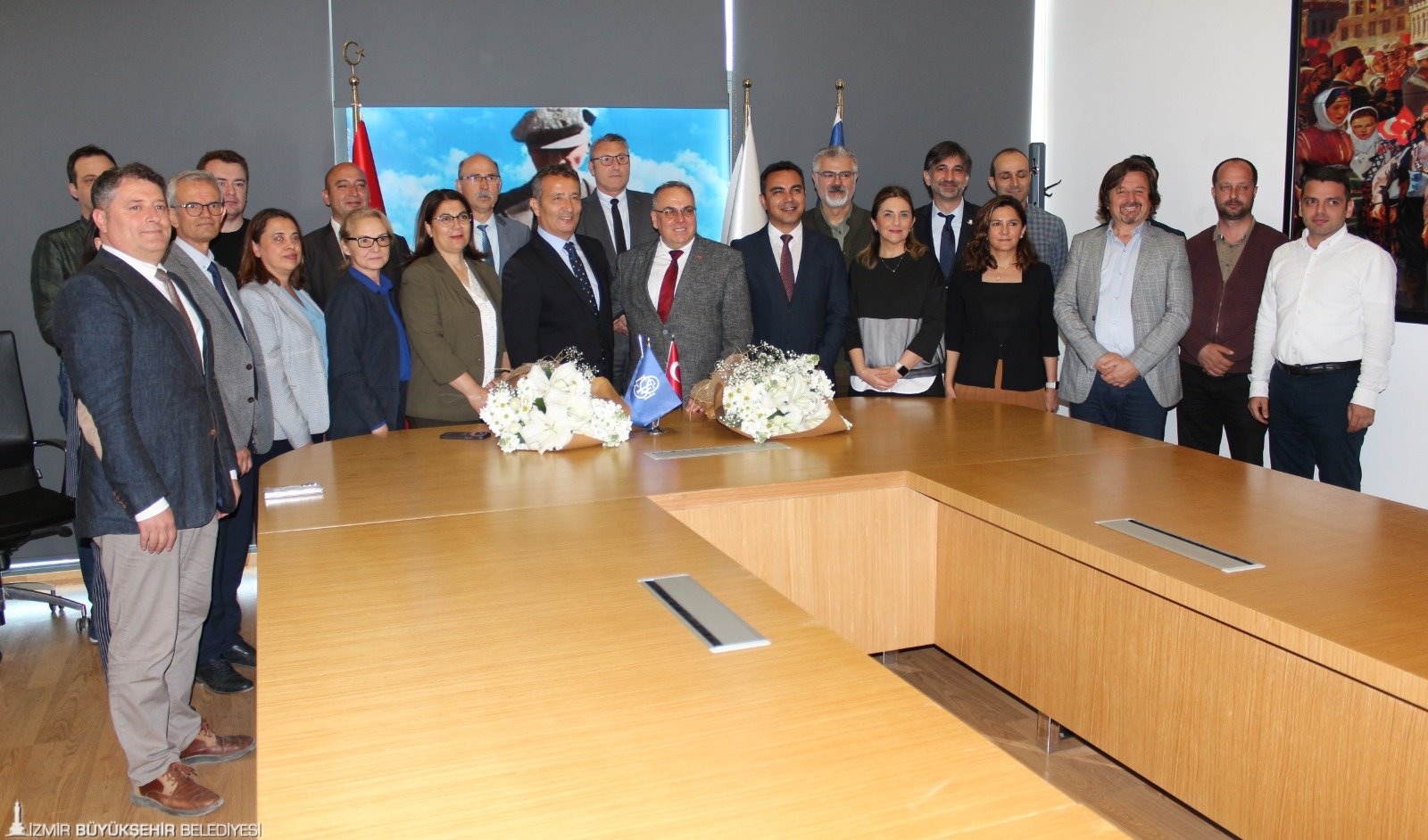 Yeni Genel Müdür Turgay Bozoğlu’nun kıymetli bir bürokrat olduğunu da vurgulayan Bey, “Kendisinin, hizmet bayrağını çok daha ileriye taşıyacağına olan inancım tam. Başarılar diliyorum” diye konuştu. ESHOT Genel Müdürü Turgay Bozoğlu, öncelikle kendisini görevlendiren Başkan Cemil Tugay’a teşekkür ettiğini, göreve layık olmak için var gücüyle çalışacağını ifade etti. 81 yıllık Cumhuriyet kurumu ESHOT’a yönetici olmanın büyük sorumluluk getirdiğini belirten Bozoğlu, İzmir’e en iyi hizmeti verme hedefinde ESHOT ailesi olarak, her zaman olduğu gibi canla başla görev yapacaklarını söyledi. Bozoğlu ve Bey, birbirlerine çiçek takdim ederek devir teslimi gerçekleştirdi.