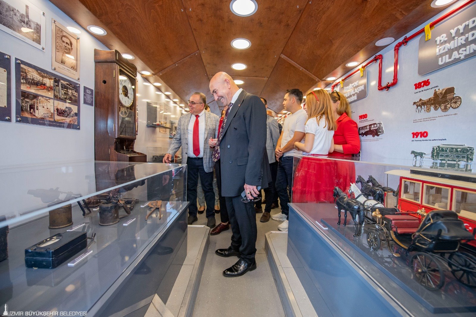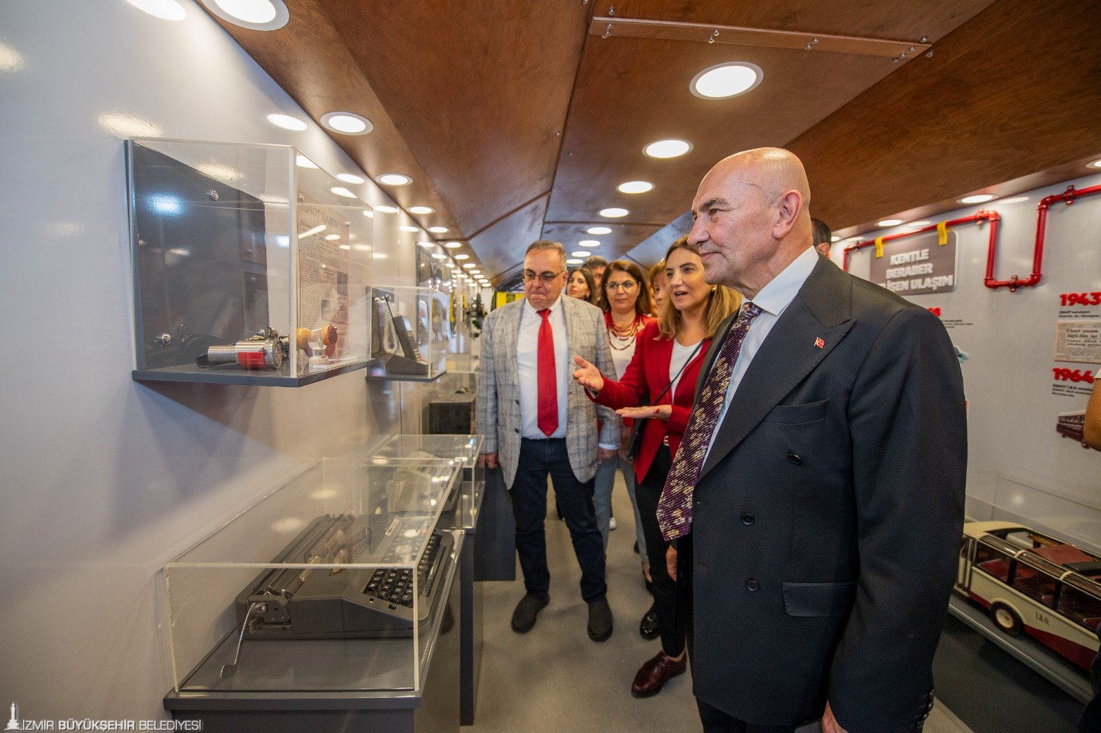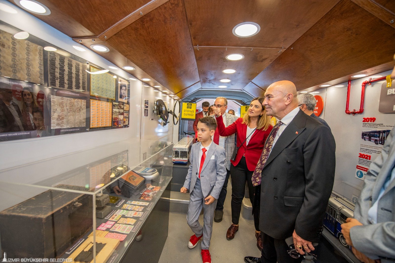 İzmir Büyükşehir Belediyesi ESHOT Genel Müdürlüğü, Cumhuriyet’in 100. yıldönümü kutlamalarına “Geçmişten Günümüze Gezici ESHOT Sergisi” ile katkı verdi. Başkan Tunç Soyer’in ziyaretiyle açılan sergi, İzmir’de toplu ulaşım hizmetinin tarihini ve gelişim süreçlerini anlatıyor.