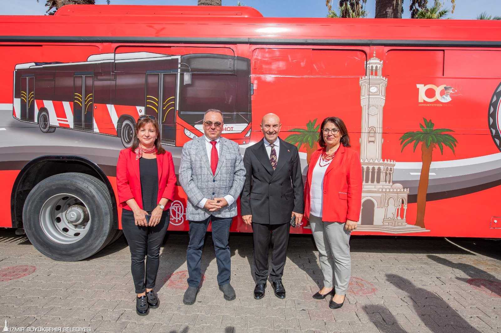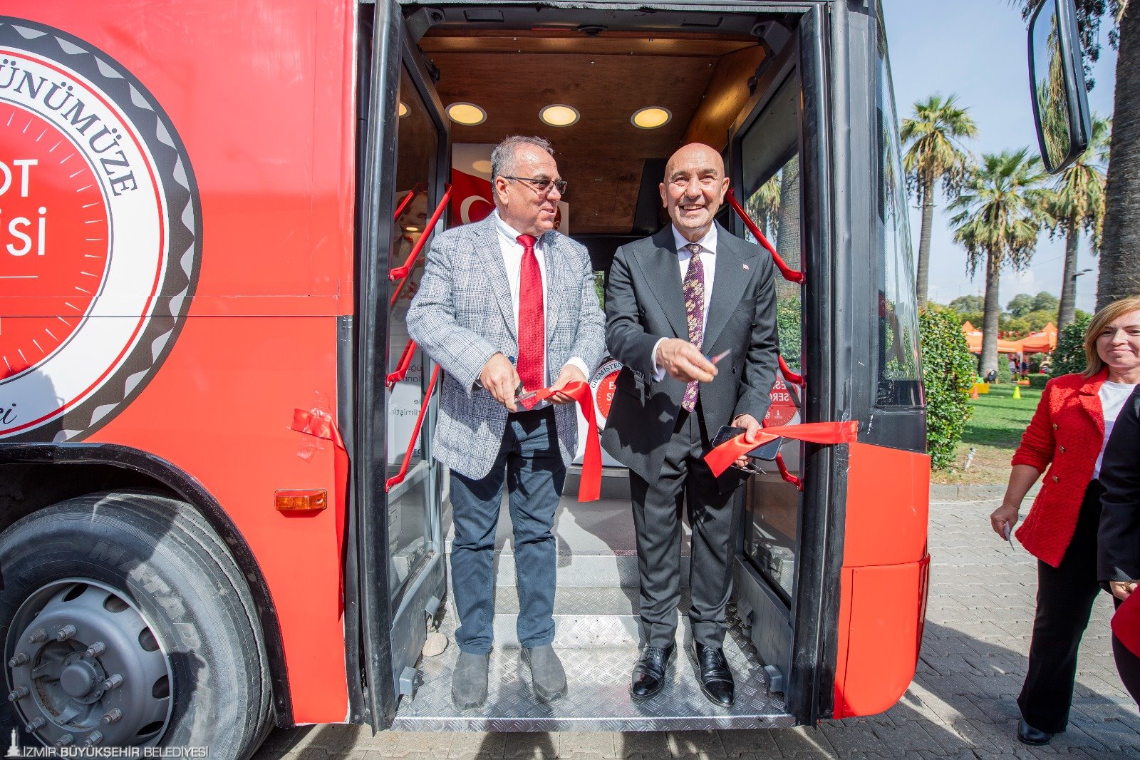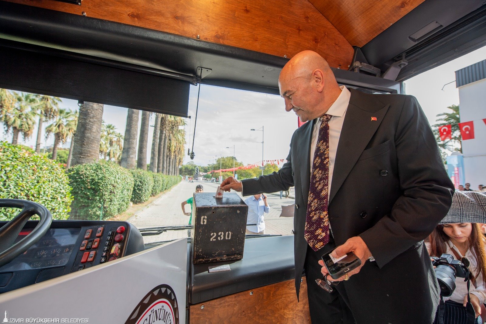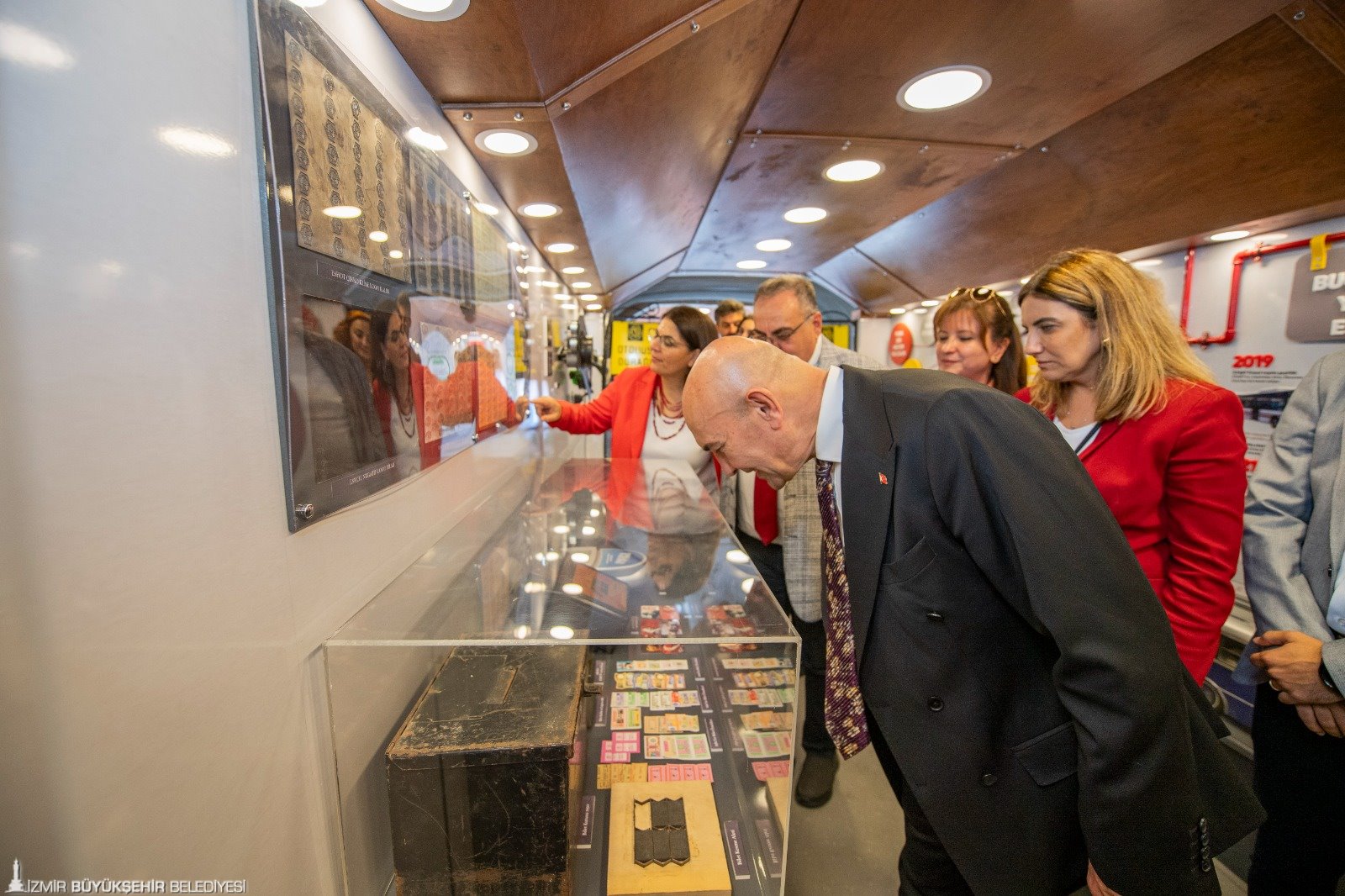 İzmir Büyükşehir Belediyesi ESHOT Genel Müdürlüğü, Cumhuriyet’in 100. yıldönümü kutlamalarına “Geçmişten Günümüze Gezici ESHOT Sergisi” ile katkı verdi. Başkan Tunç Soyer’in ziyaretiyle açılan sergi, İzmir’de toplu ulaşım hizmetinin tarihini ve gelişim süreçlerini anlatıyor.