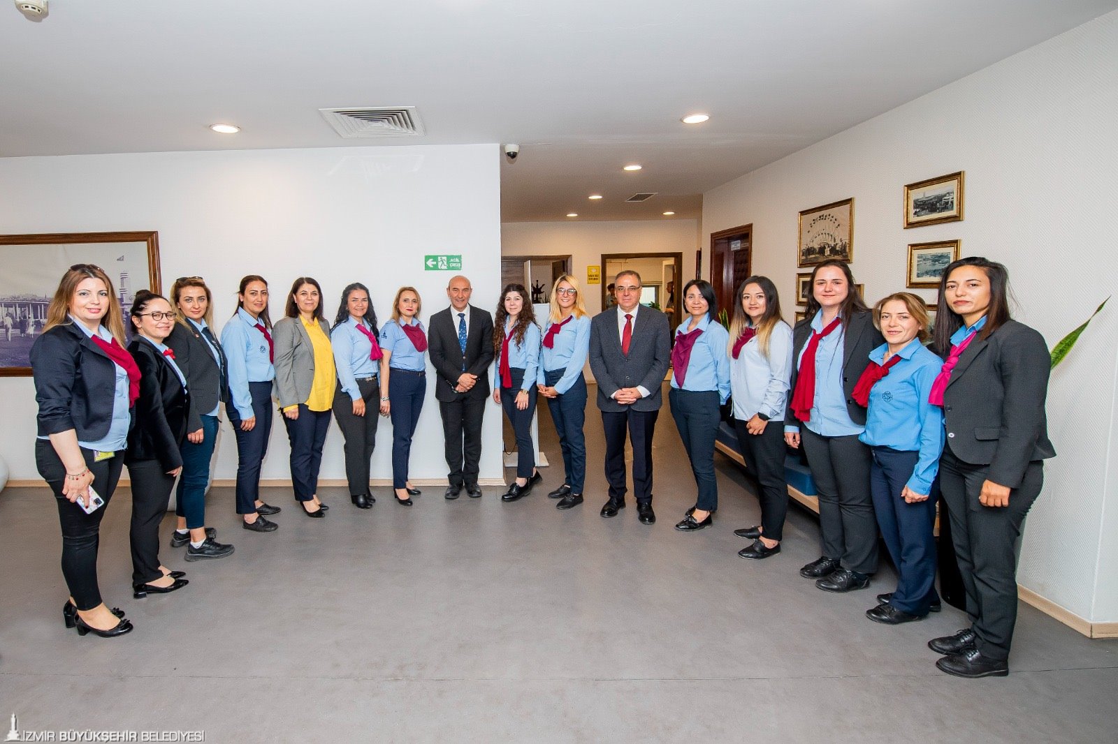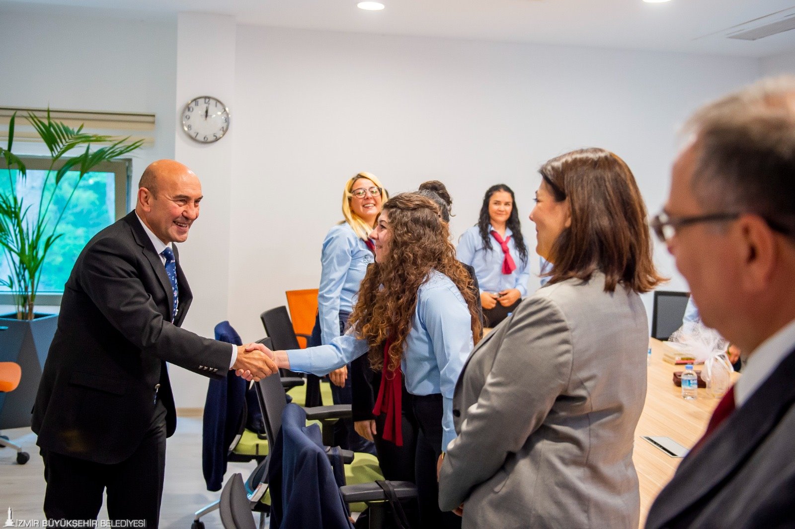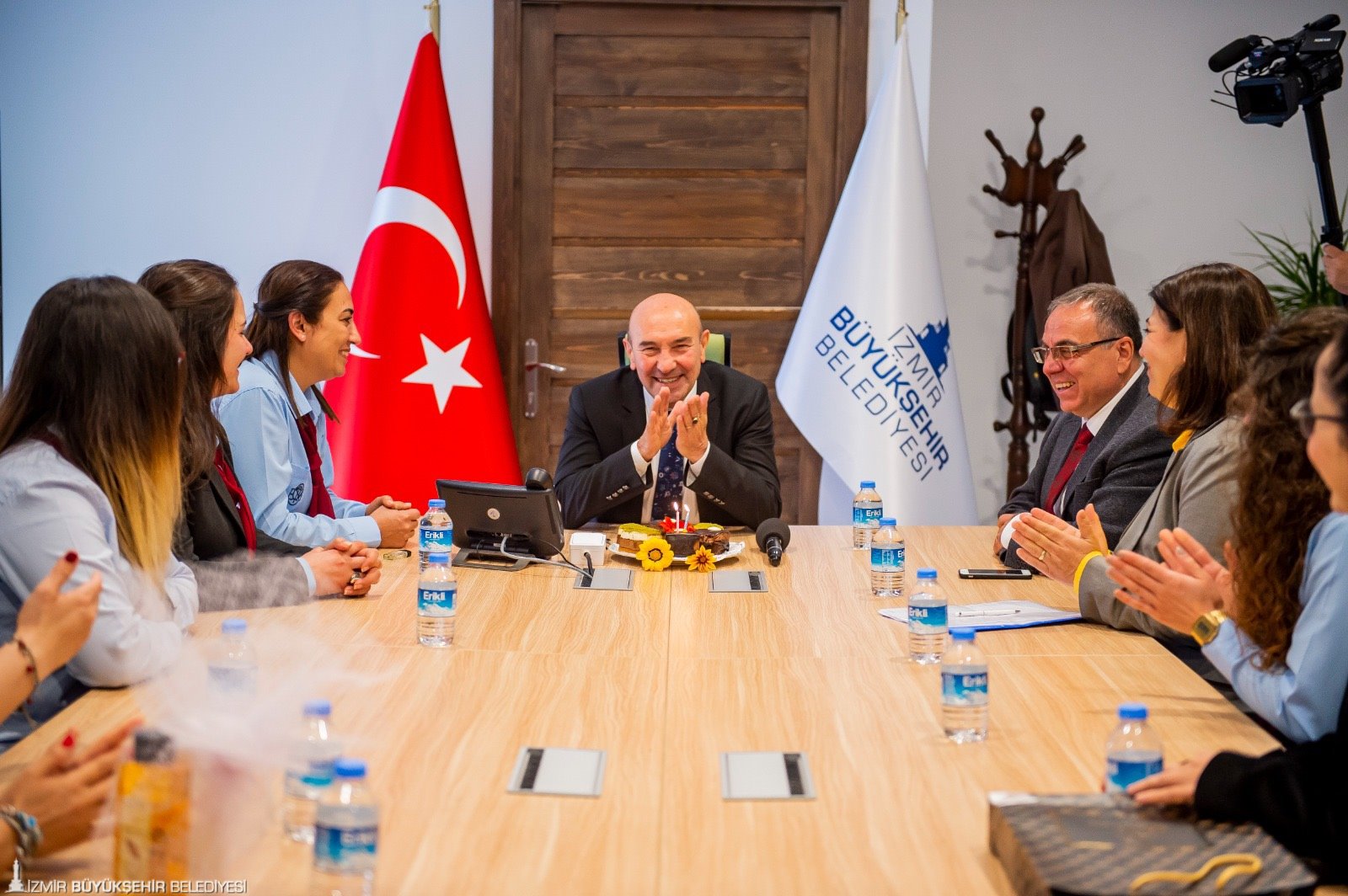 İzmir Büyükşehir Belediye Başkanı Tunç Soyer, İzmir Sanat Merkezi’nde bulunan çalışma ofisinde ESHOT’ta görevli 13 kadın şoförü ağırladı. Ziyarete ESHOT Genel Müdürü Erhan Bey ile Genel Müdür Yardımcısı Kader Sertpoyraz da katıldı. Nezaket ziyaretinde bulunan kadın şoförler Başkan Tunç Soyer’e doğum günü sürprizi yaparak pasta getirdi. En güzel doğum günü hediyesinin çalışanlarının mutluluğu olduğunu ifade eden Başkan Soyer, “Bizim iftihar sebebimizsiniz. Sizin bu vefakarlığınız beni çok mutlu ediyor. Birlikte uzun yıllar geçirmek dileğiyle. Siz sadece İzmir’e değil tüm Türkiye’ye örnek oldunuz. Bugün sizlerin sayesinde geldiğimiz nokta içimizi ferahlatıyor. Ama asla yeterli değil. Sizin sayesinde birçok kadının da yolunu açacağız. Bunun gerçek bir yolculuğa dönüşmesi için kadın şoför sayısını giderek artıracağız. İzmir’de her başarılı erkeğin arkasında bir kadın var, bunu hep söylüyorum” dedi.