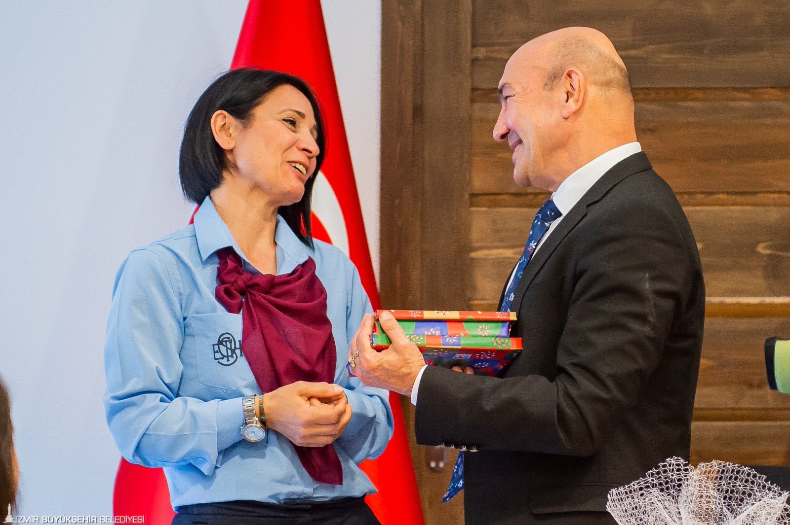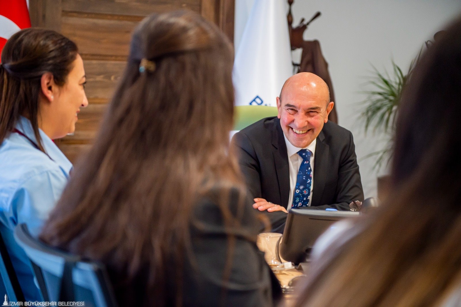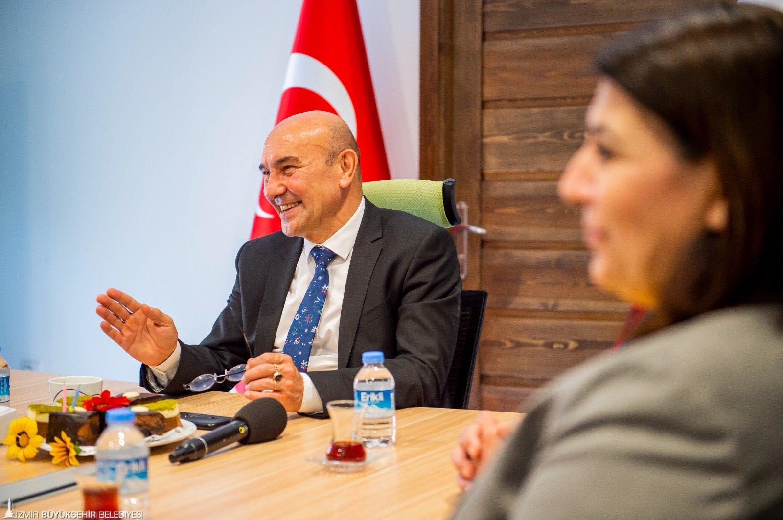 İzmir Büyükşehir Belediye Başkanı Tunç Soyer, İzmir Sanat Merkezi’nde bulunan çalışma ofisinde ESHOT’ta görevli 13 kadın şoförü ağırladı. Ziyarete ESHOT Genel Müdürü Erhan Bey ile Genel Müdür Yardımcısı Kader Sertpoyraz da katıldı. Nezaket ziyaretinde bulunan kadın şoförler Başkan Tunç Soyer’e doğum günü sürprizi yaparak pasta getirdi. En güzel doğum günü hediyesinin çalışanlarının mutluluğu olduğunu ifade eden Başkan Soyer, “Bizim iftihar sebebimizsiniz. Sizin bu vefakarlığınız beni çok mutlu ediyor. Birlikte uzun yıllar geçirmek dileğiyle. Siz sadece İzmir’e değil tüm Türkiye’ye örnek oldunuz. Bugün sizlerin sayesinde geldiğimiz nokta içimizi ferahlatıyor. Ama asla yeterli değil. Sizin sayesinde birçok kadının da yolunu açacağız. Bunun gerçek bir yolculuğa dönüşmesi için kadın şoför sayısını giderek artıracağız. İzmir’de her başarılı erkeğin arkasında bir kadın var, bunu hep söylüyorum” dedi.