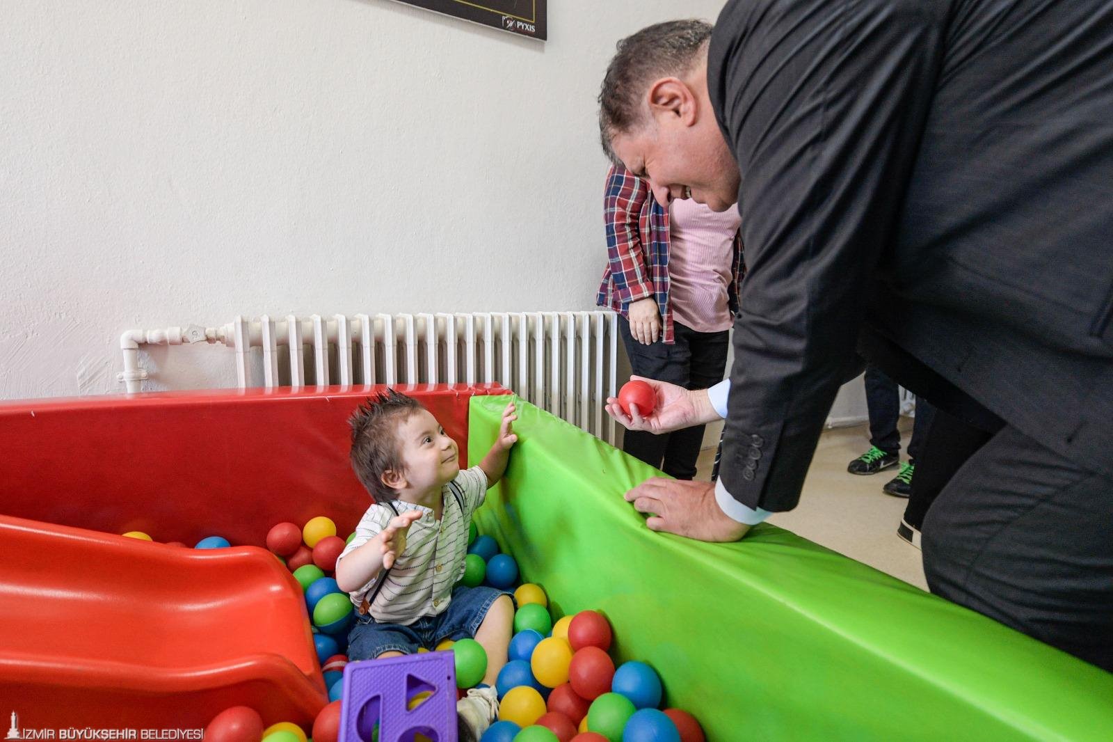 Başkan Tugay, temel atma töreni sonrasında inşaat çalışmalarını inceledi. Ardından Mezarlıklar Dairesi Başkanlığı'na giderek buradaki personelle selamlaşan Başkan Tugay, cenazelerini teslim almaya gelen yurttaşlara taziyede bulundu. Başkan Tugay'ın bir sonraki durağı, Konak Engelsiz Yaşam Köyü oldu. Konak Engelsiz Yaşam Köyü Vakıf Başkanı Burhan Özfatura'dan köyün faaliyetleri hakkında bilgi alan Başkan Tugay, burada 4 yaşındaki Hüseyin Çelikel'i kucağına alarak sevdi. Kurumda eğitim alan engelli bireyler ise Başkan Tugay'a süs bitkisi hediye etti.