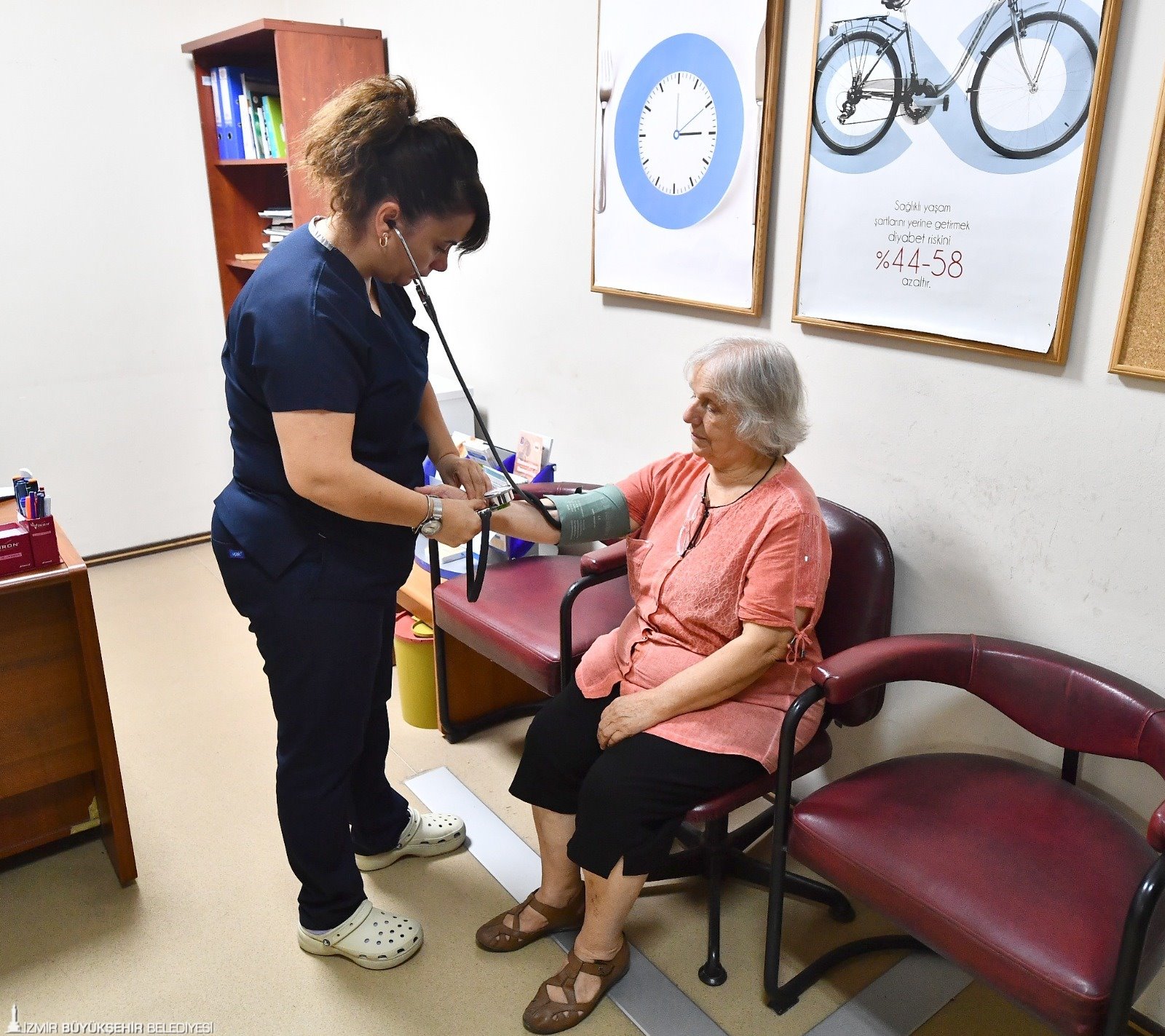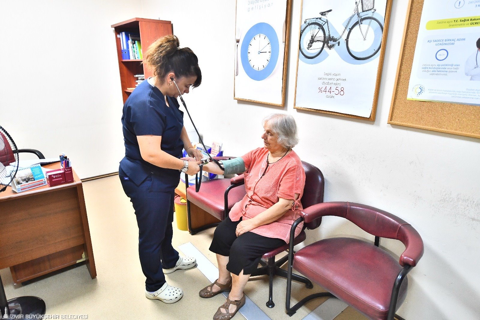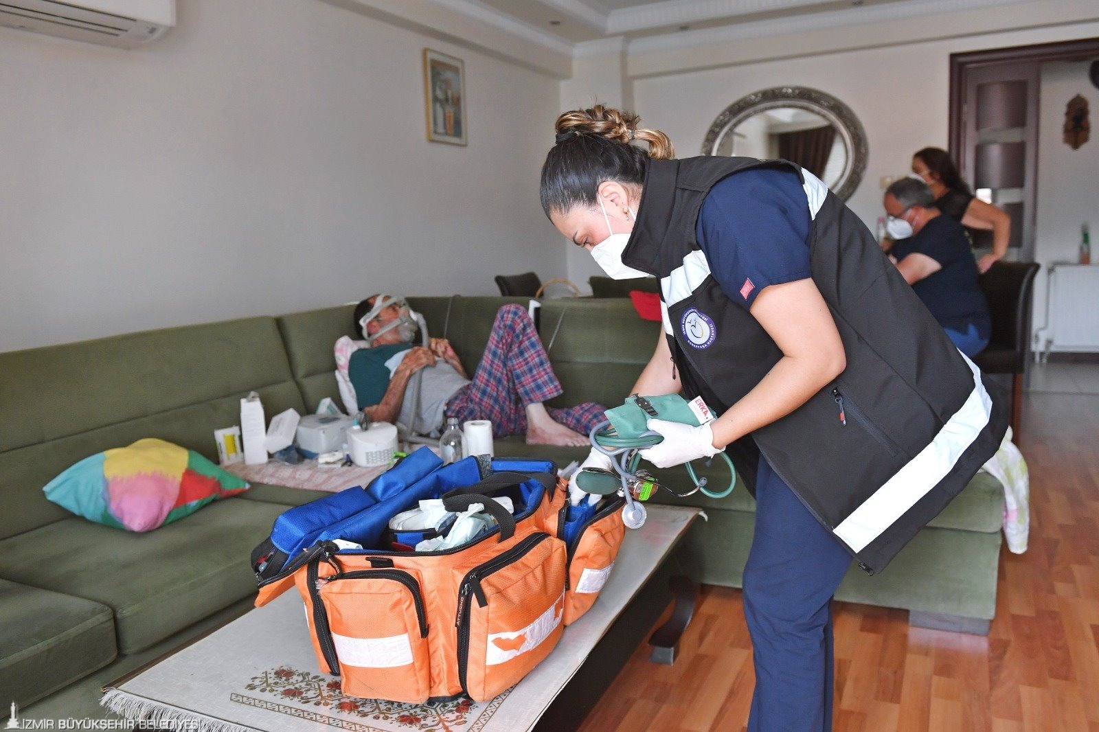 İzmir Büyükşehir Belediyesi Evde Bakım Birimi ise 15 araç, sekiz hekim, bir diş hekimi, iki fizyoterapist, 27 paramedik, hemşire ve hasta bakım personeli ile hizmet veriyor. Birim tarafından merkez, Bayraklı, Kemalpaşa, Karaburun, Tire ve Ödemiş şubeleri ile il genelinde İzmirlilere kapsamlı hizmet sunuluyor. Bu kapsamda sağlık hizmeti, kişisel bakım hizmeti, mini onarım hizmeti veriliyor. Bu hizmetten kronik hastalıkları nedeniyle yürüyemeyen ve yatağa bağımlı hastalarla ev içerisinde kısıtlı mobil hastalar, bası yarası olan hastalar, Alzheimer- Demans hastaları, terminal dönem palyatif bakım hastaları, ileri derecede kas hastaları ve yatağa bağımlı, spastik ve engelli çocuk hastalar faydalanıyor. Ekipler yerinde hasta muayenesi, laboratuvar tetkikleri için kan ve örnek alma, mama, bez ve ilaç raporlarının çıkarılması, beslenme tüpü ve sonda değişimleri, yerinde uzman hekim değerlendirmesi, evde yapılabilecek fizyoterapi hizmetleri, evde diş hekimi muayenesi ve evden hastaneye nakil hizmeti sunuyor. Ayrıca psikolojik destek hizmeti, kişisel bakım hizmeti, kuaför hizmeti, ev temizliği hizmeti ile küçük onarım destek hizmeti de sağlanıyor. Bu yıl çağrı merkezinden 81 bin 970 görüşme yapıldı, 5 bin 558 yeni kayıtlı hasta girişi oluşturuldu.