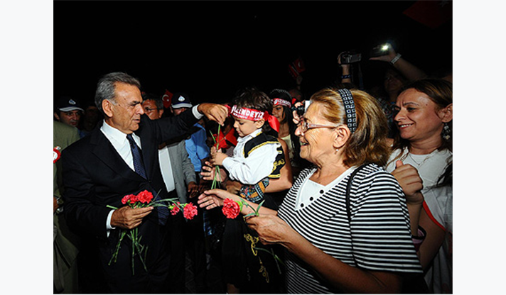 29 Ekim Cumhuriyet Bayramı etkinlikleri kapsamında İzmir Büyükşehir Belediyesi tarafından düzenlenen Fener Alayı yürüyüşünün, bu yıl çok daha büyük bir coşkuyla gerçekleşmesi bekleniyor. Cumhuriyet’in kuruluşunun 89. yıldönümü dolayısıyla gerçekleştirilen kutlamalar çerçevesinde, 29 Ekim 2012 Pazartesi günü saat 21.00’de Fener Alayı düzenlenecek. Cumhuriyet Meydanı’ndan başlayacak olan yürüyüş, Gündoğdu Meydanı’nda son bulacak. Bando ve marşlar eşliğinde gerçekleştirilen Fener Alayı yürüyüşünün ardından, havai fişek gösterileriyle Cumhuriyet coşkusu yeniden yaşanacak.