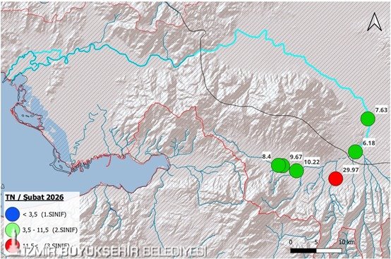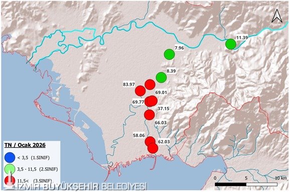 İZSU ve MASKİ verileri bir araya getirilerek bütüncül yaklaşımla yürütülen çalışmalar sonucu hazırlanan Ocak ve Şubat 2026 tarihli “Gediz Nehri ve Yan Derelerinin Kirlilik İzleme Raporu”, havzanın idari sınırlarla değil, ekosistem bütünlüğüyle ele alınması gerektiğini ortaya koyuyor. Rapora göre Gediz 401 kilometrelik yaşam koridoru üzerinde sadece su taşımıyor; aynı zamanda sanayi, evsel atık ve tarımsal baskının izlerini de Körfez’e kadar sürüklüyor. Gediz Nehri’nin Manisa sınırları içerisine kirletilmiş olarak giriş yaptığı görülüyor. Ocak 2026 raporuna göre İzmir tarafında örneklenen Gediz ana kolundaki birçok noktada temel su kalite göstergeleri alarm veriyor. Toplam azot ve fosfor tüm örnekleme noktalarında sınır değerlerin üzerinde yer alırken, su kalitesi III. sınıf olarak sınıflandırılıyor. İletkenlik (tuzluluk) yine tüm noktalarda III. sınıf seviyesinde ölçülürken, kimyasal oksijen ihtiyacı (KOİ) ve biyolojik oksijen ihtiyacı (BOİ) gibi organik yük göstergelerinde çok sayıda noktada “orta kirlenmiş su” seviyesi tespit ediliyor. Raporda ayrıca bromür, alüminyum, demir ve bakır değerlerinin tüm örneklerde çevresel kalite sınırlarının üzerinde olduğu belirtiliyor. Bu durumun, nehirde hem organik yükün hem de endüstriyel ve tarımsal kaynaklı baskının eş zamanlı etkili olduğuna işaret ettiği ifade ediliyor.